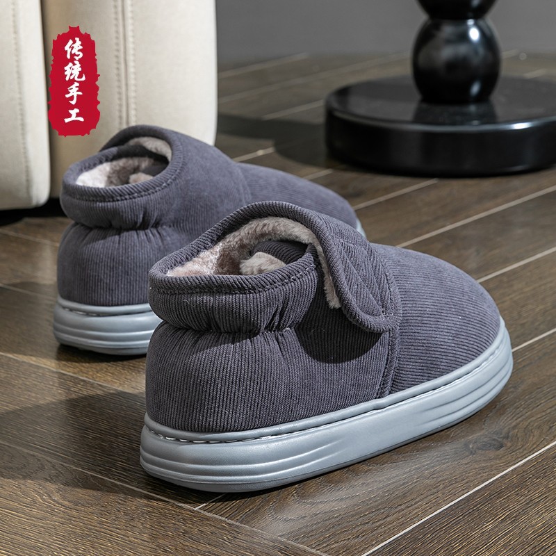 加绒保暖冬天老人包跟保暖鞋 男冬季 女士厚底中老年手工棉鞋 棉拖鞋