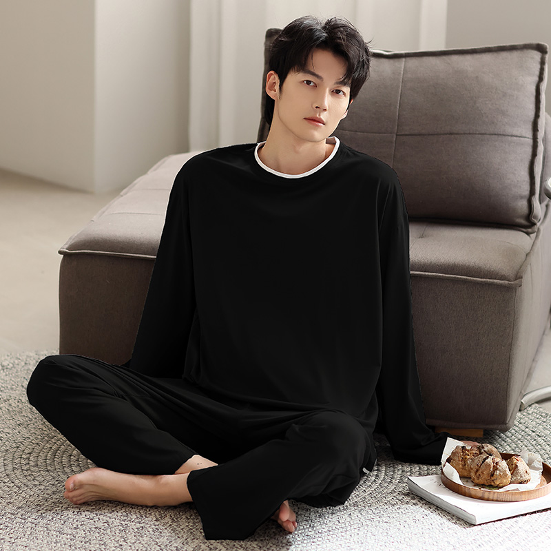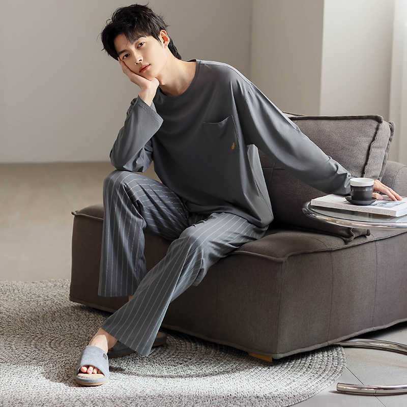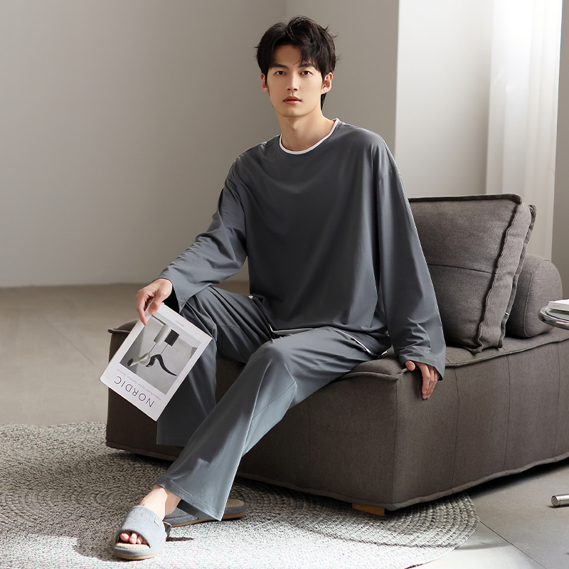 睡衣春秋款 青年家居服套装 圆领套头夏季 秋冬大码 薄长袖 莫代尔男士