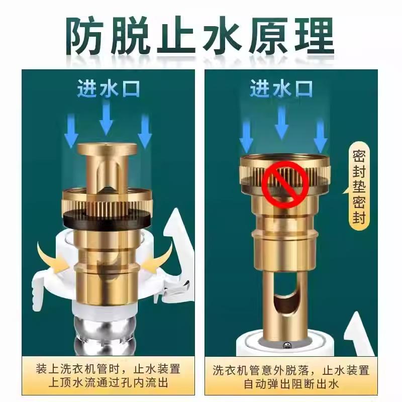 洗衣机水龙头自动止水阀防止脱落水嘴转接头全铜专用家用4分配件