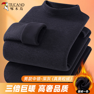 棉毛裤 啄木鸟半高领男女同款 防寒棉毛衫 冬季 加绒加厚保暖内衣套装