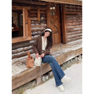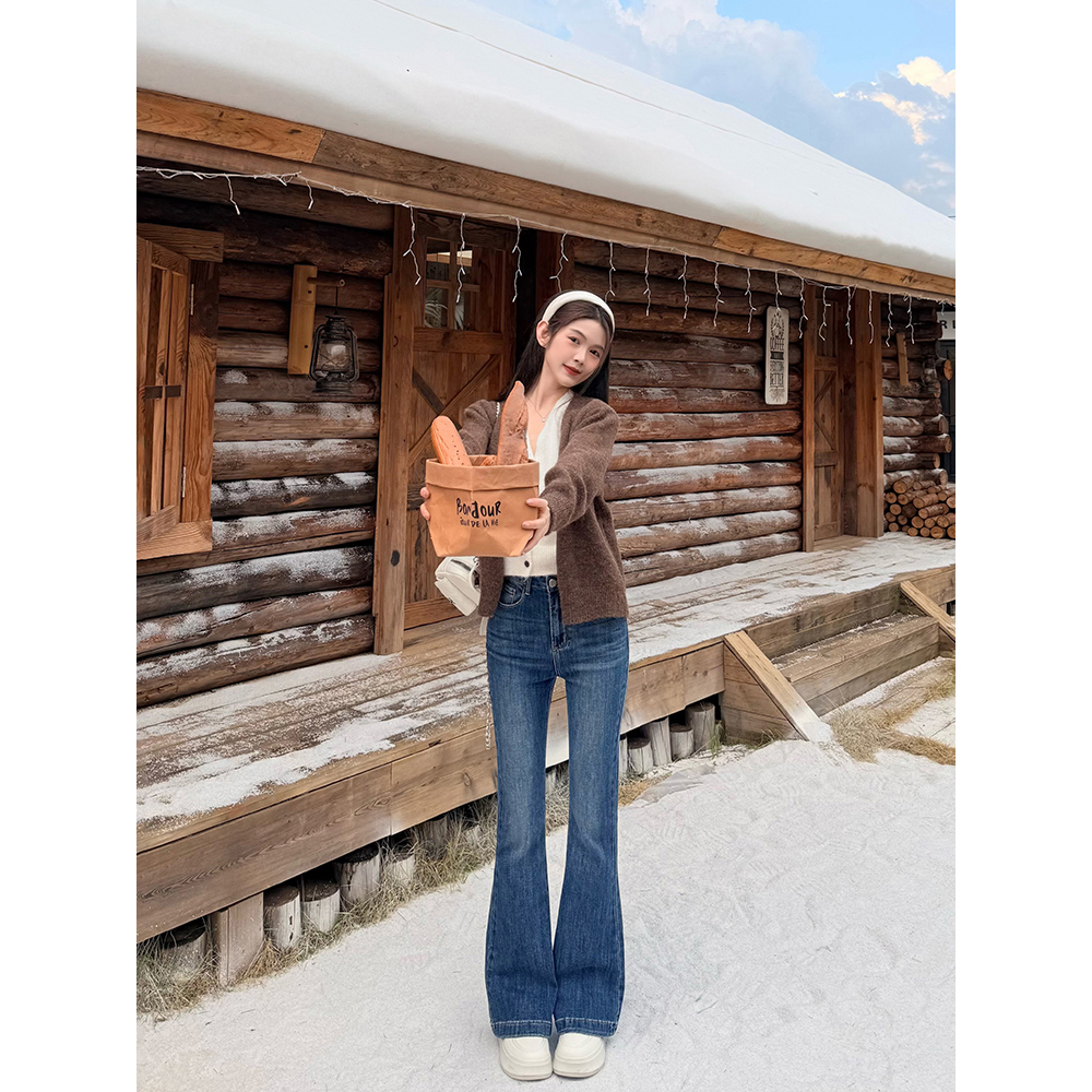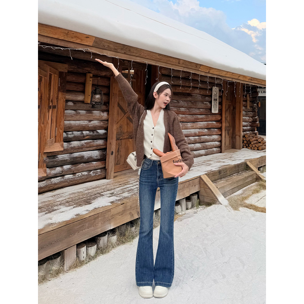 子 加绒高腰直筒显瘦小个子九分微喇叭裤 微喇牛仔裤 女秋冬2025新款