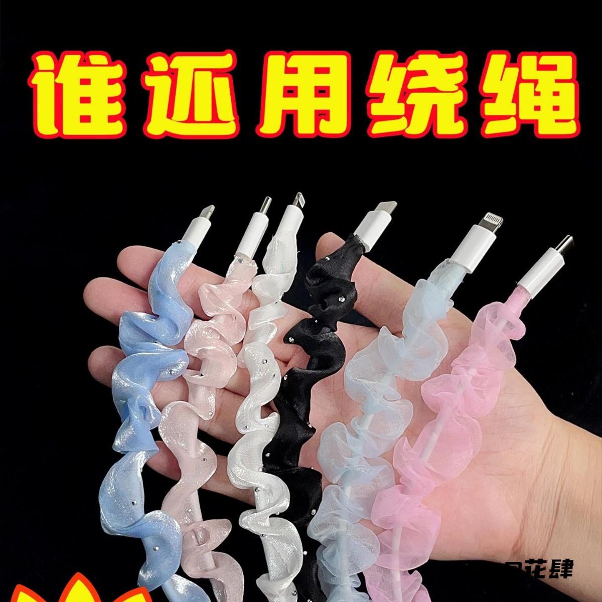 咬线器防折断满天星优雅缎面多层数据线套保护绳安卓布料泡泡纱