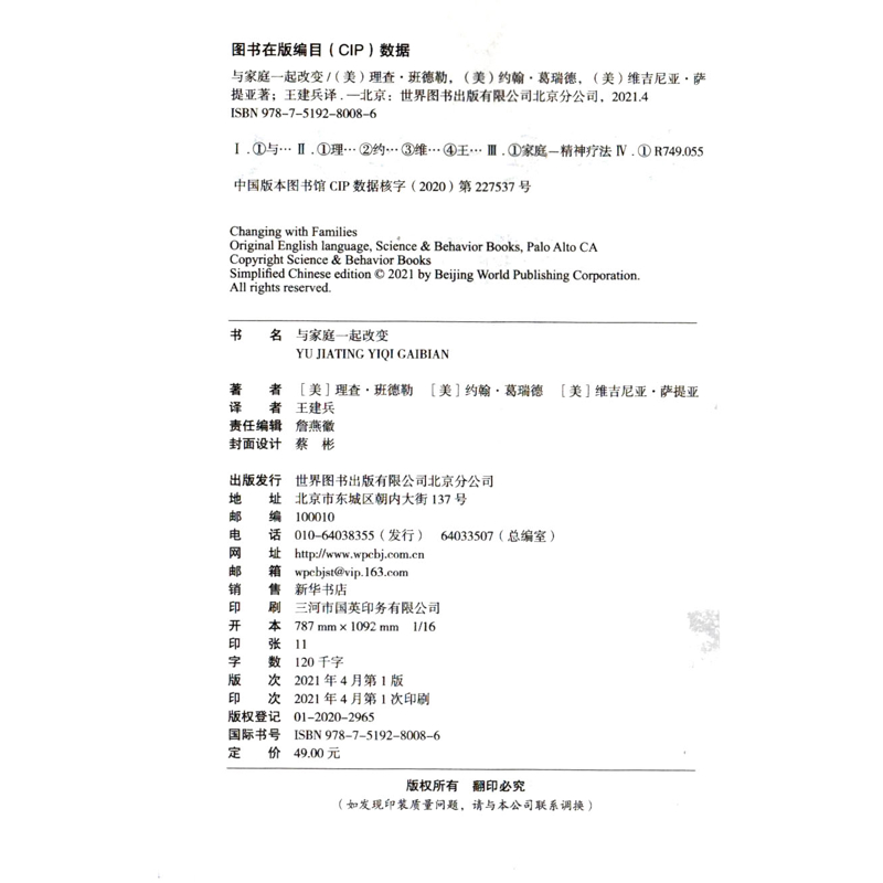美 王建兵译心理学世界图书出版 理查·班德勒 维吉尼亚·萨提亚著 有限公司北京分公司 约翰·葛瑞德 与家庭一起改变