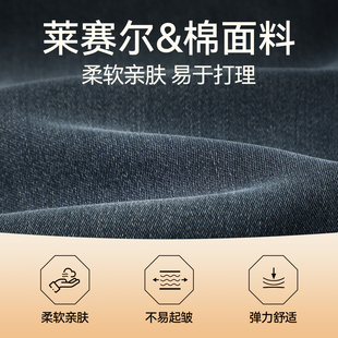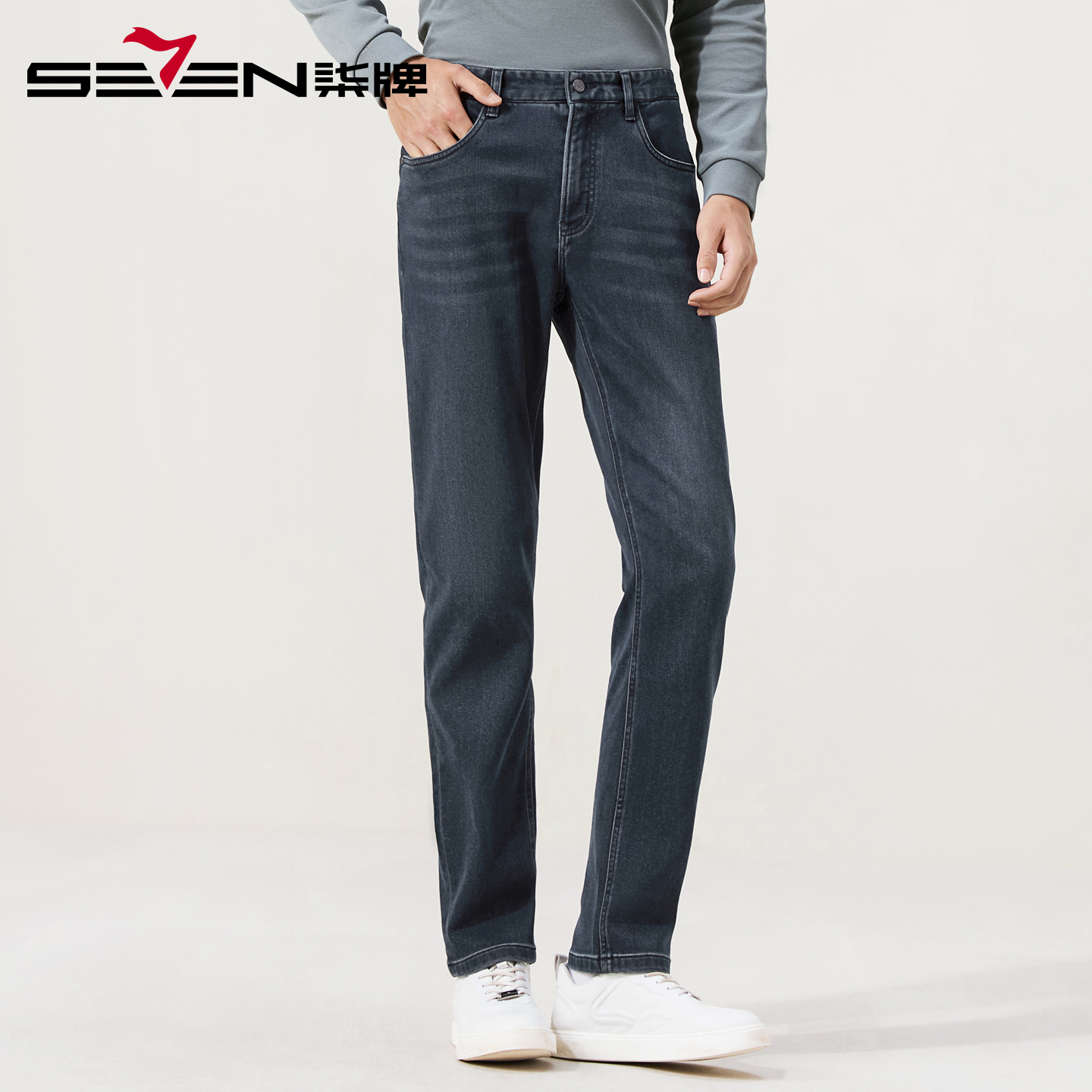 含莱赛尔天丝 时尚 柒牌保暖磨毛牛仔裤 新款 休闲长裤 男2025冬季