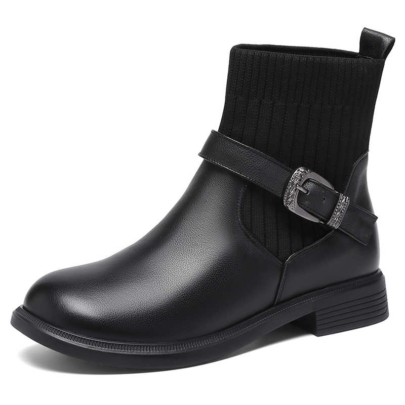 瘦瘦单靴加绒妈妈短靴 软底皮鞋 真皮平底女靴子马丁靴秋冬新款 女鞋
