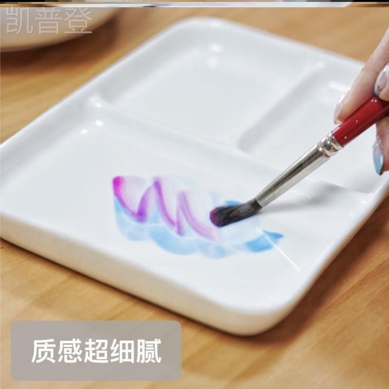 六品堂水彩陶瓷调色板美术生专用三线板梅花盘儿童绘画加厚大容量白瓷碟丙烯颜料国画油画水粉调色盘