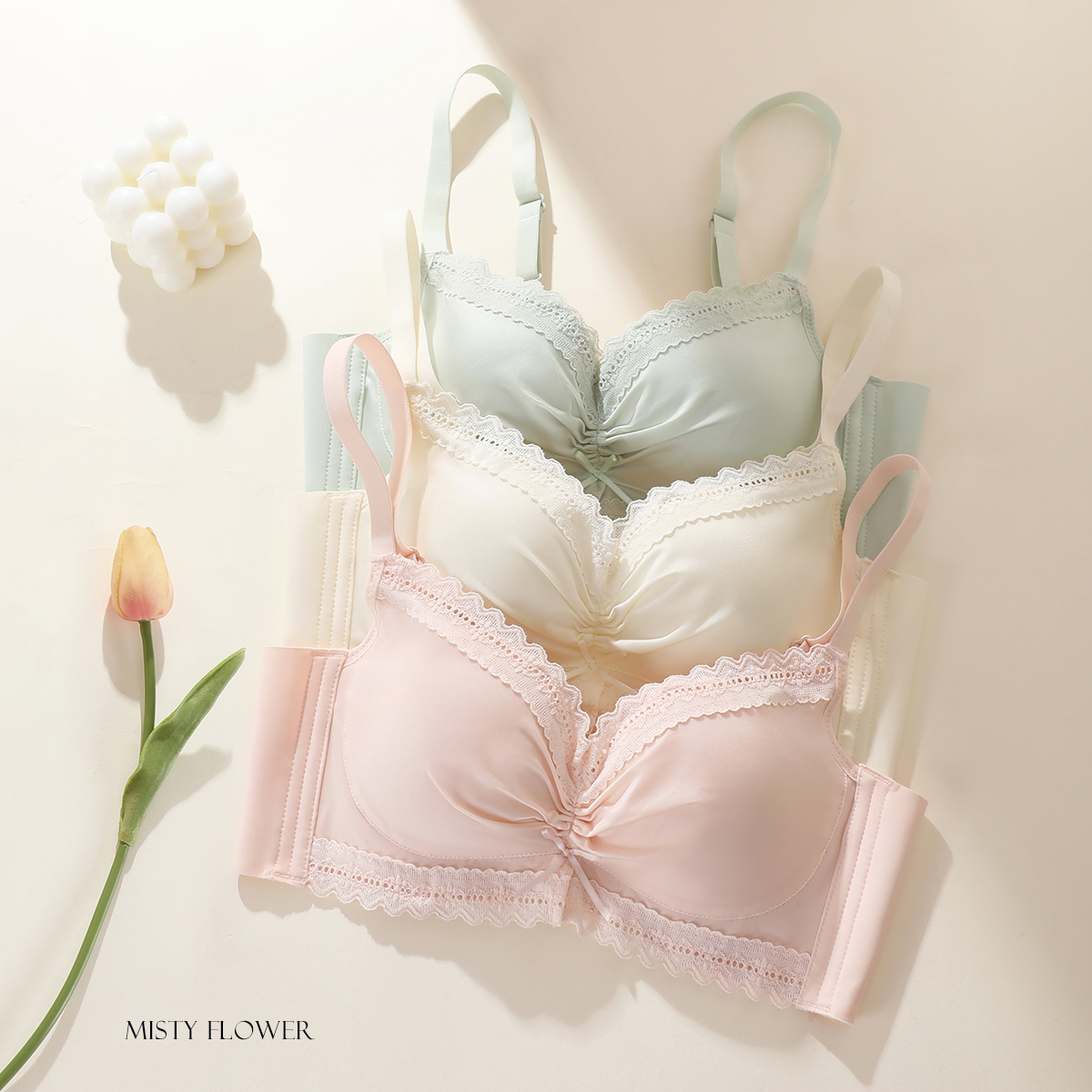 熳洁儿25秋小胸聚拢显大蕾丝文胸无钢圈舒适无痕收副乳莫代尔内衣
