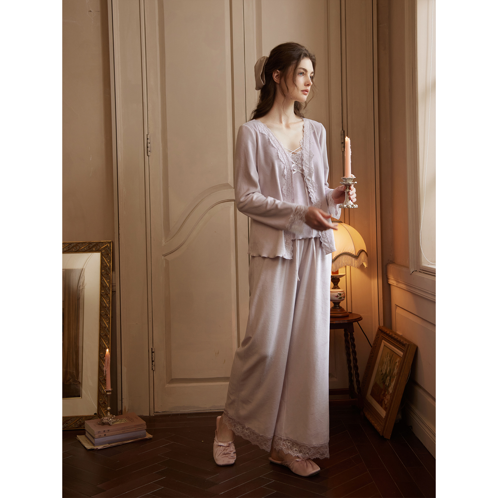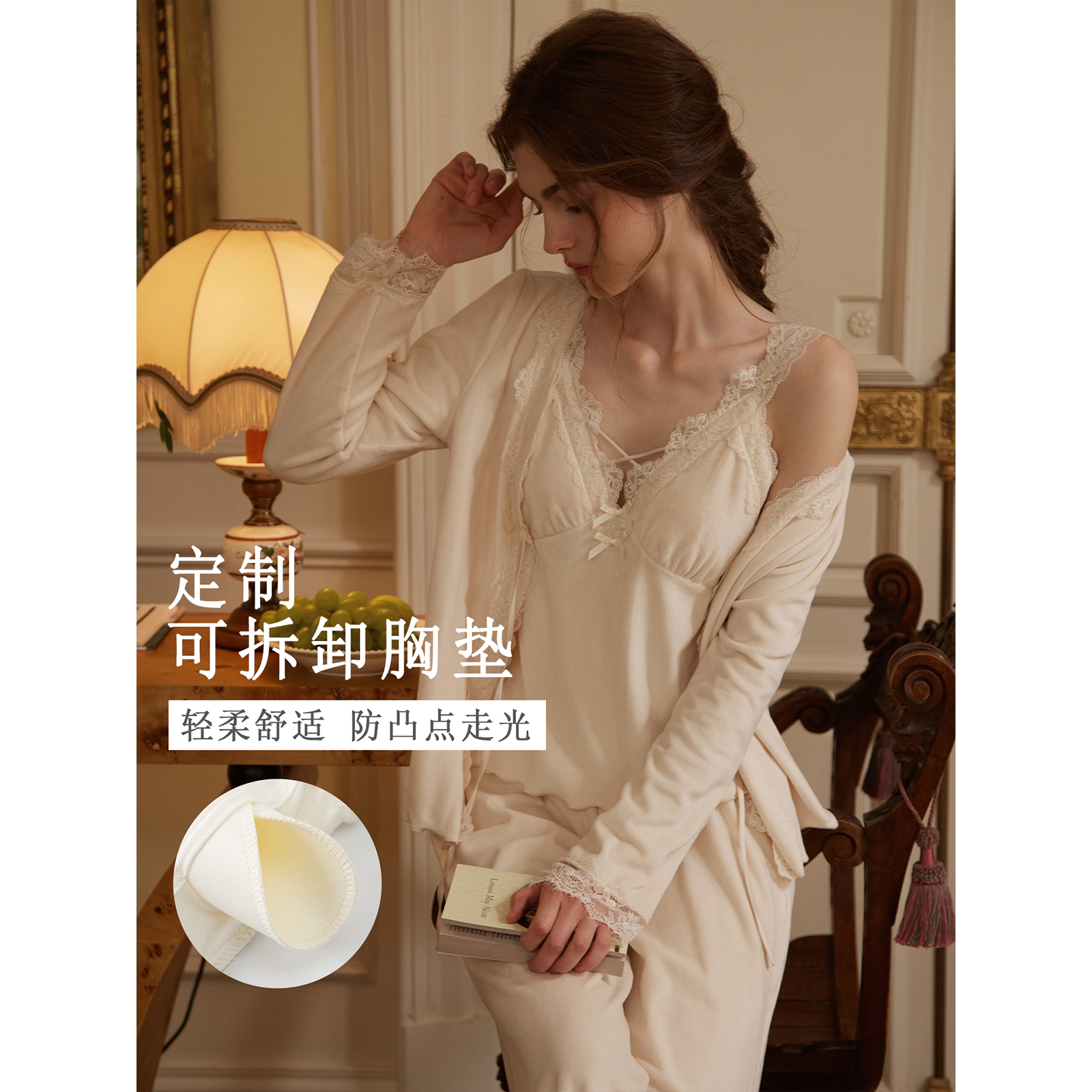 带胸垫可外穿 薄绒家居服套装 RoseTree珊瑚绒睡衣女款 三件套秋冬季