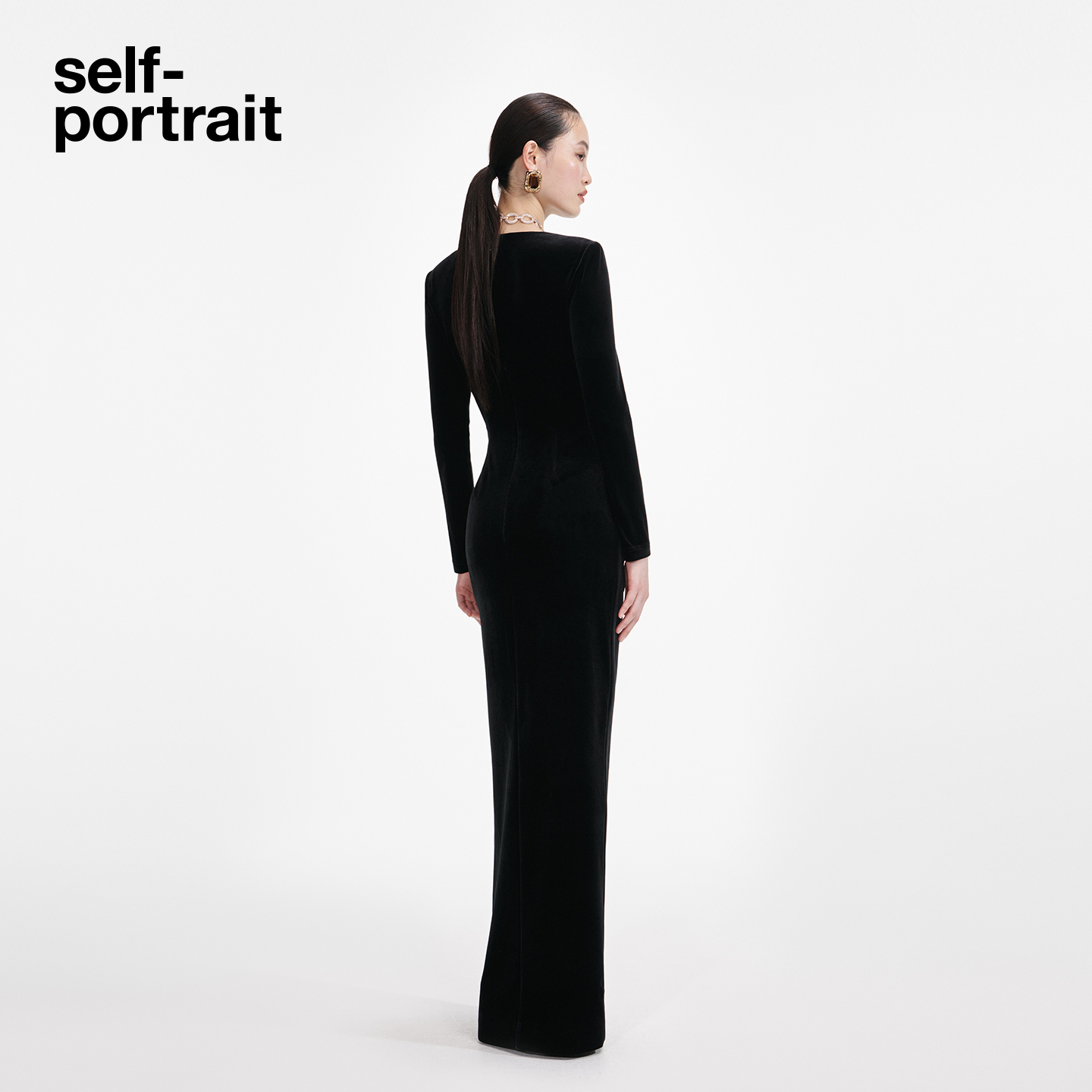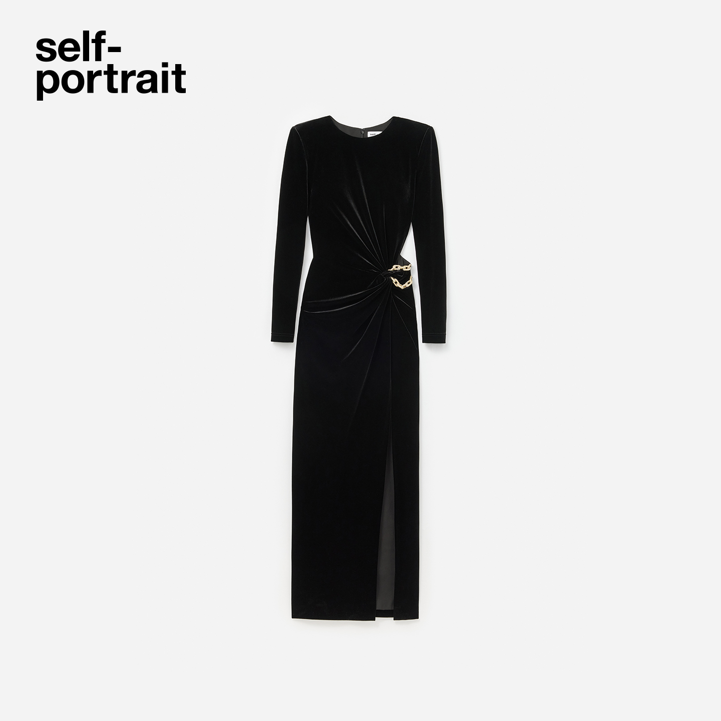 经典 2025秋冬新款 黑钻链镂空丝绒礼服连衣裙长裙 portrait self