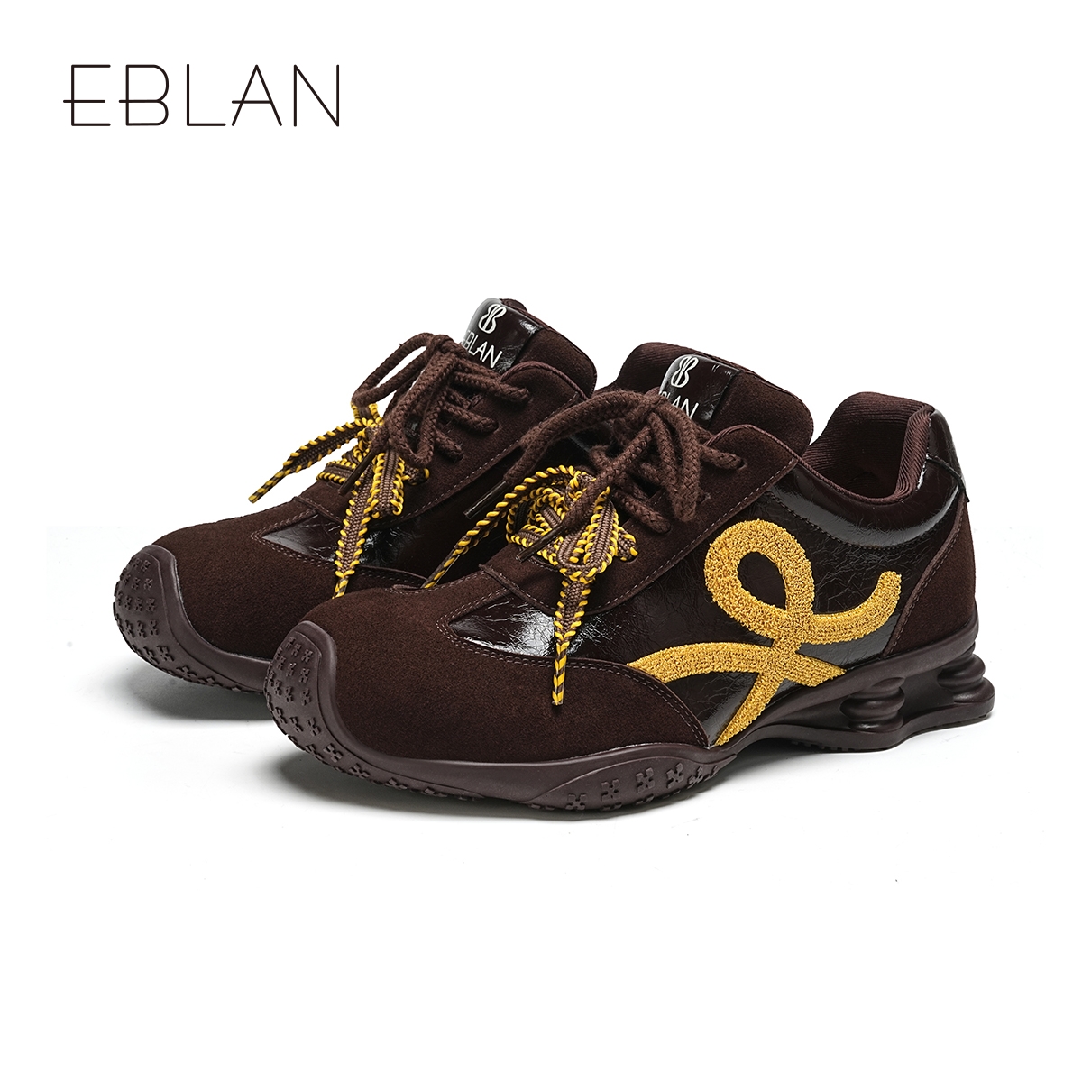 女款 休闲运动鞋 2025秋季 棕色内增高设计感小众时尚 新款 人本德训鞋