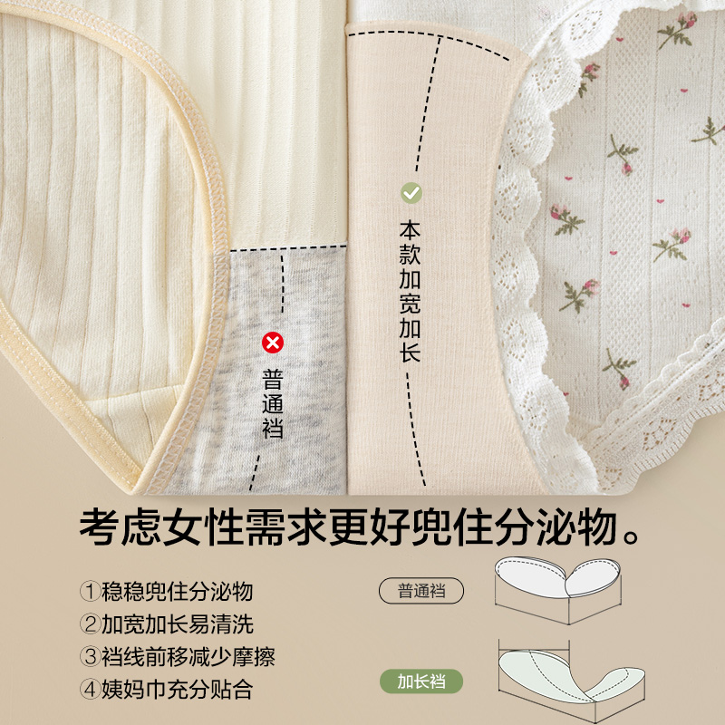 妇炎洁内裤 纯棉抗菌全棉裆中高腰加长底裆无痕舒适三角 女2025新款