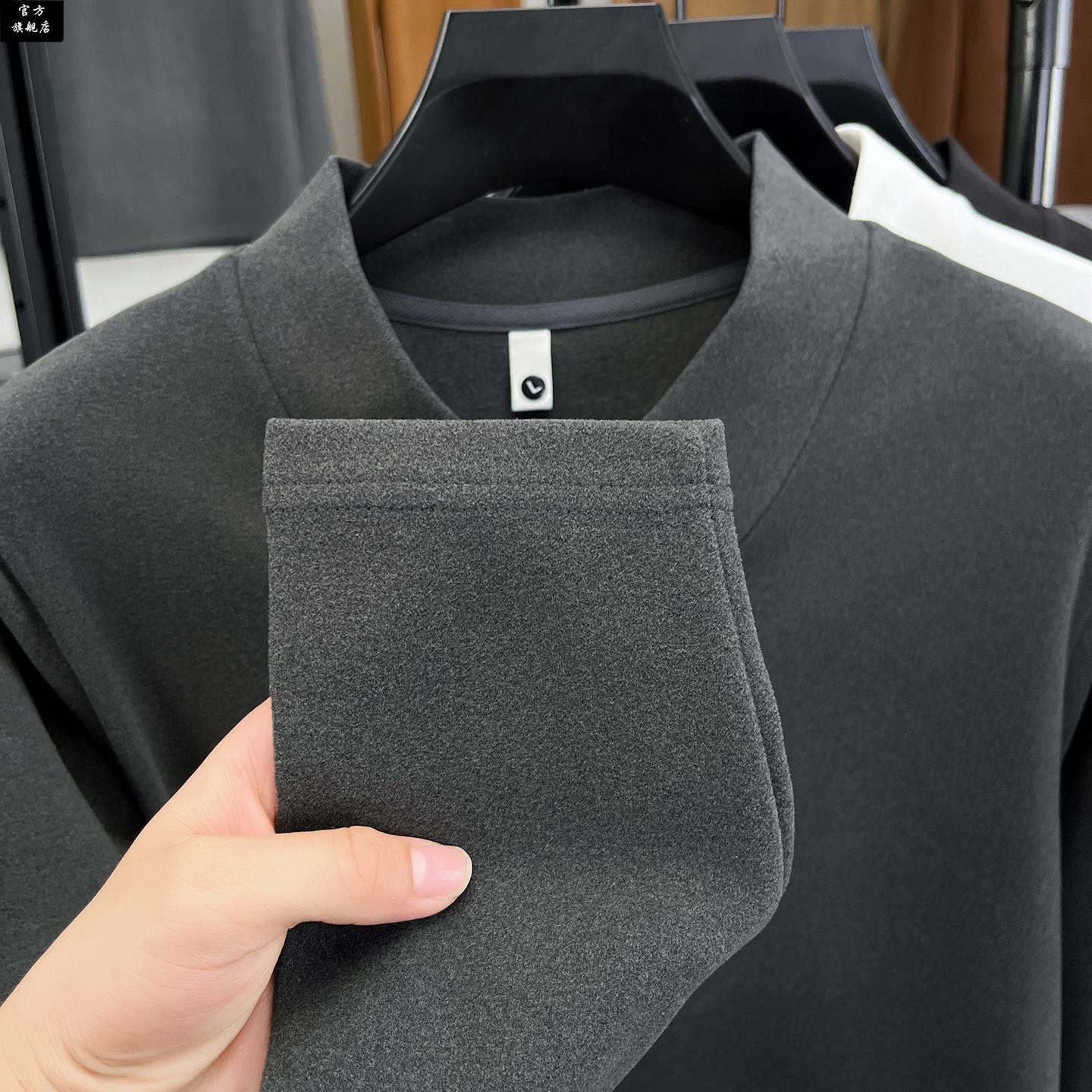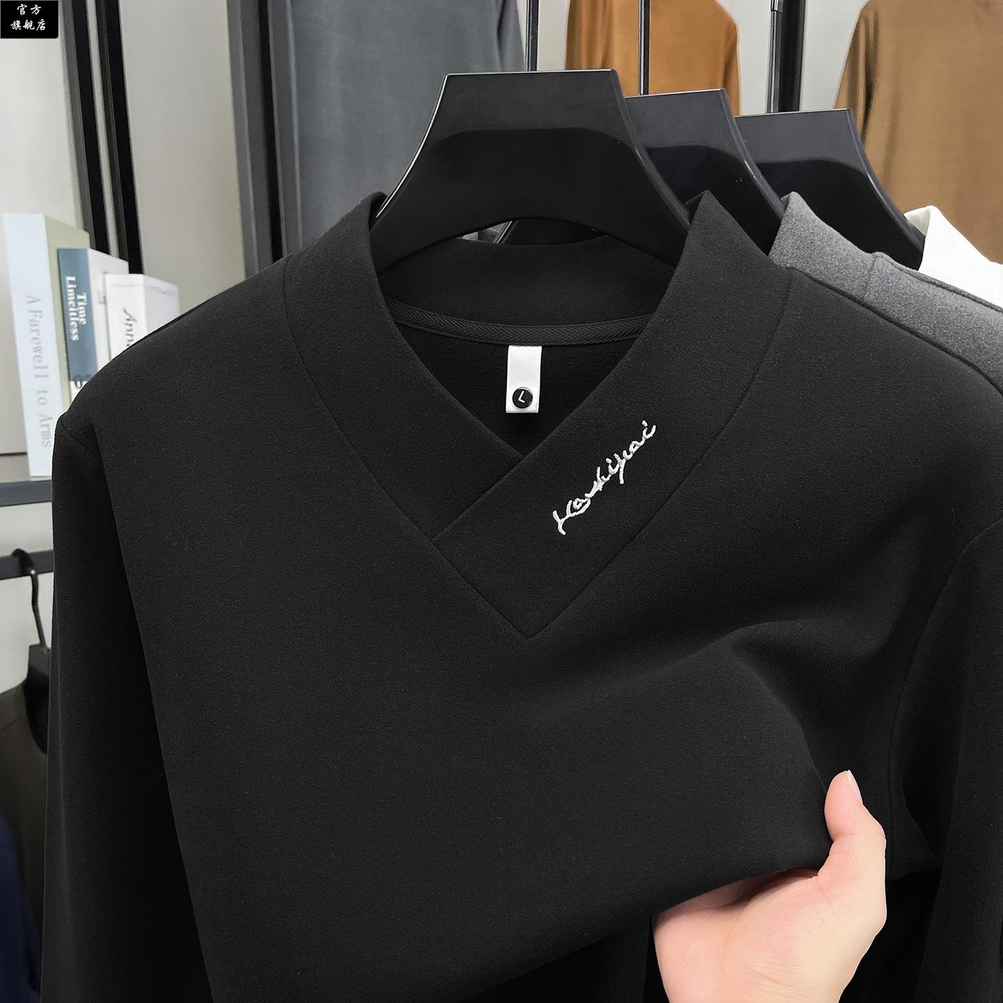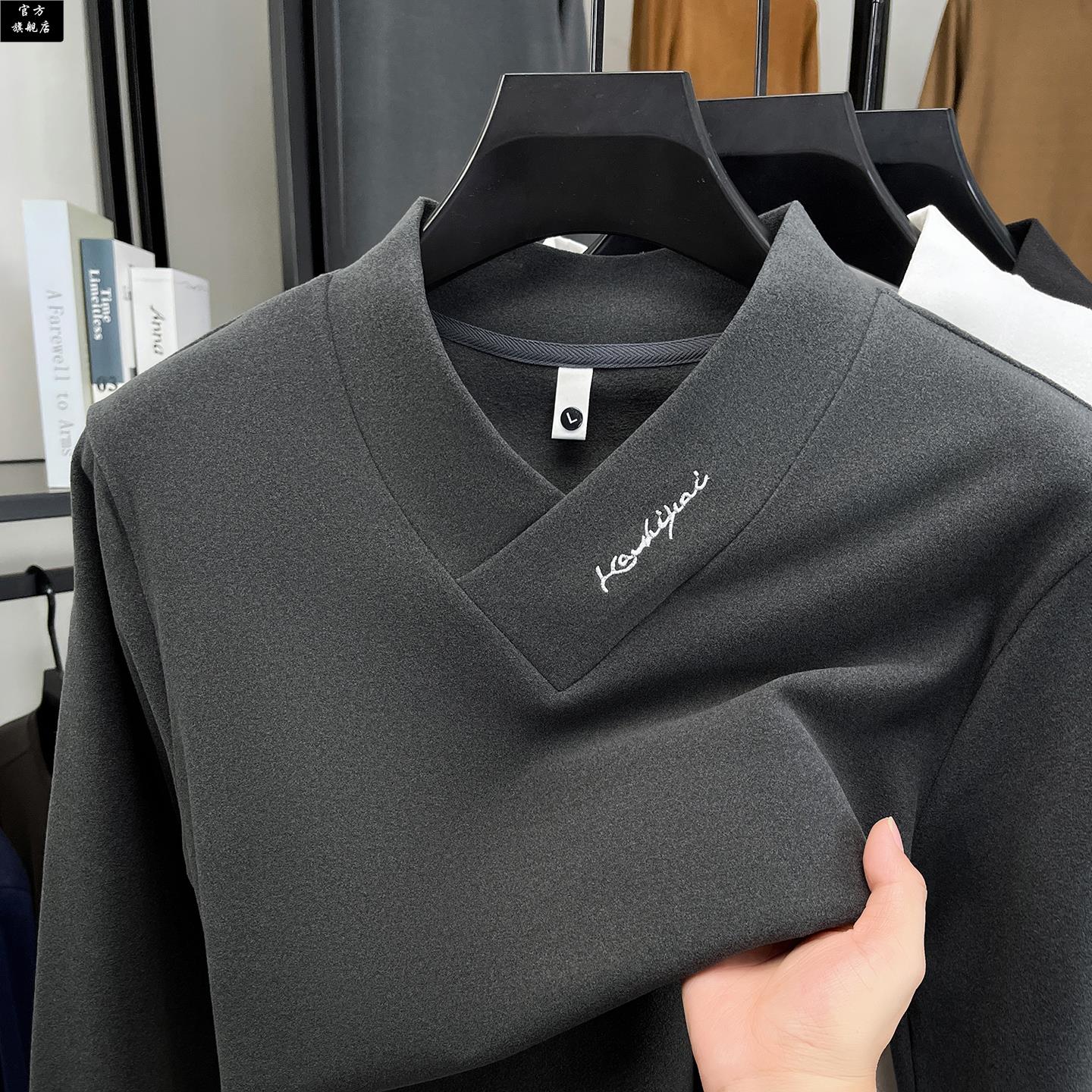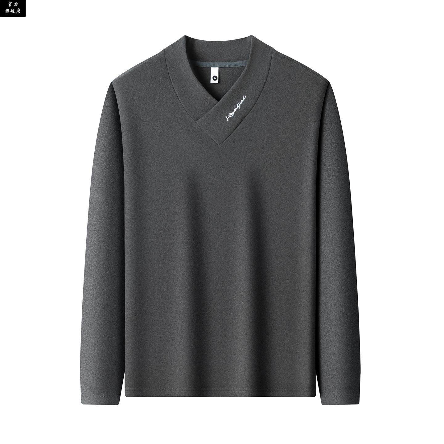 潮流上衣保暖内搭休闲 T恤白色休闲打底衫 保罗官方男士 V领德绒长袖
