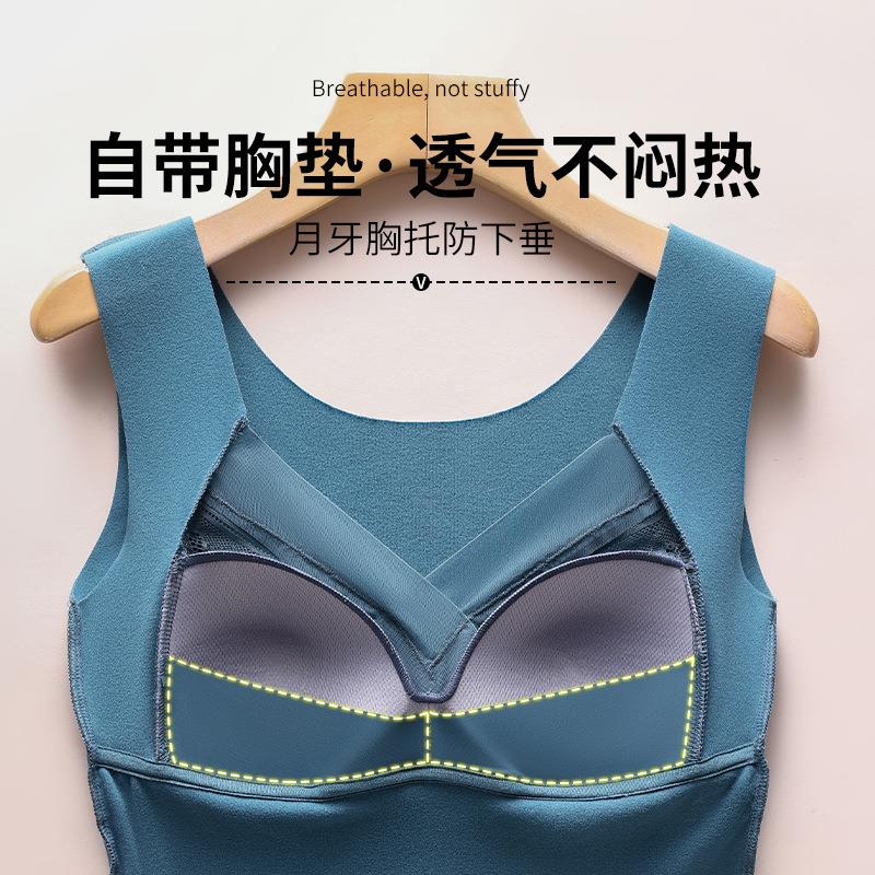 免穿文胸带胸垫加绒保暖内衣女士秋冬季 无痕蕾丝德绒内搭打底背心