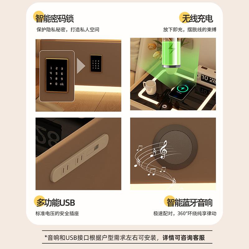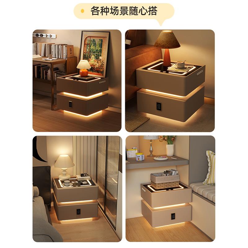 网红智能床头柜带密码 锁实木家用卧室简约现代小户型床边柜灯一体