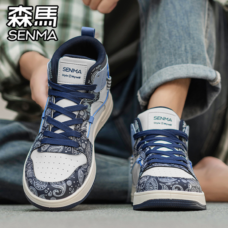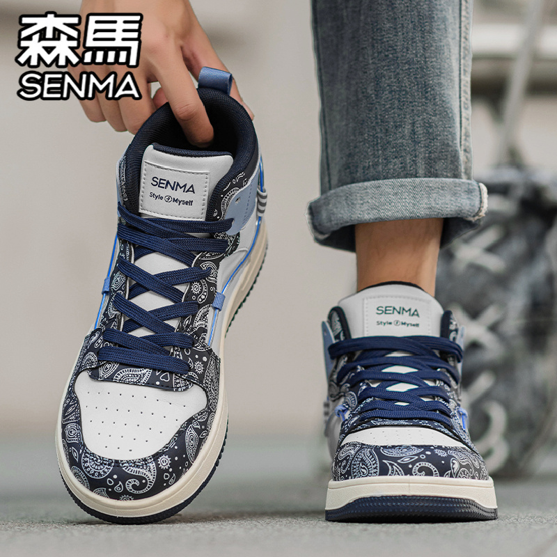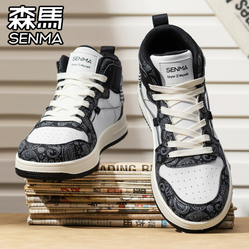 男鞋 子学生运动鞋 新款 皮面鞋 秋冬高帮休闲鞋 电池熊猫鸿星尔克板鞋