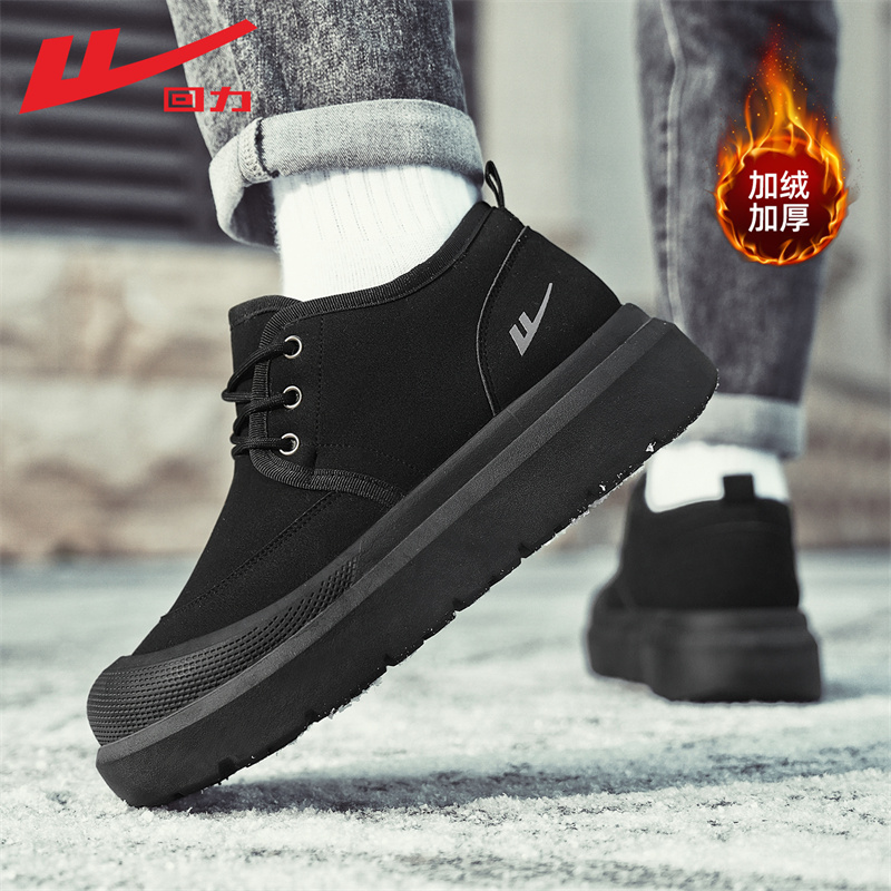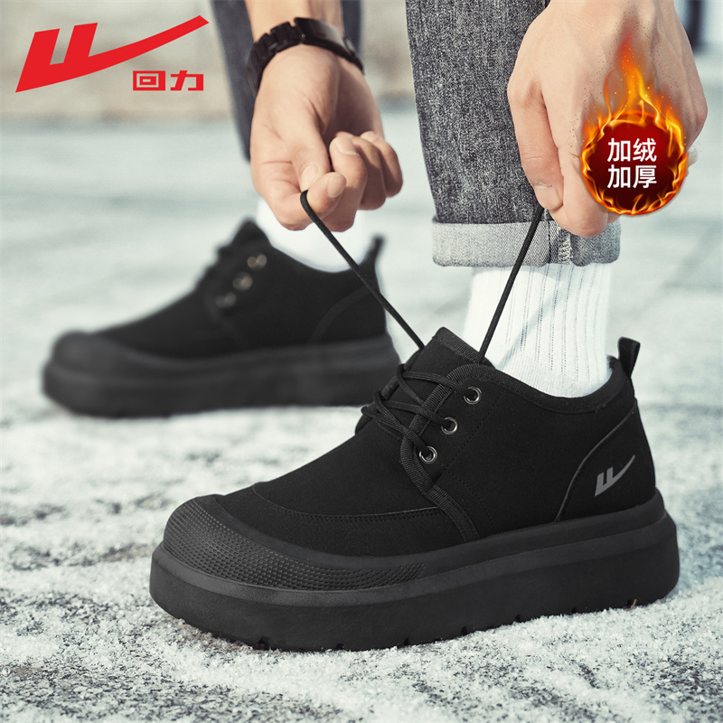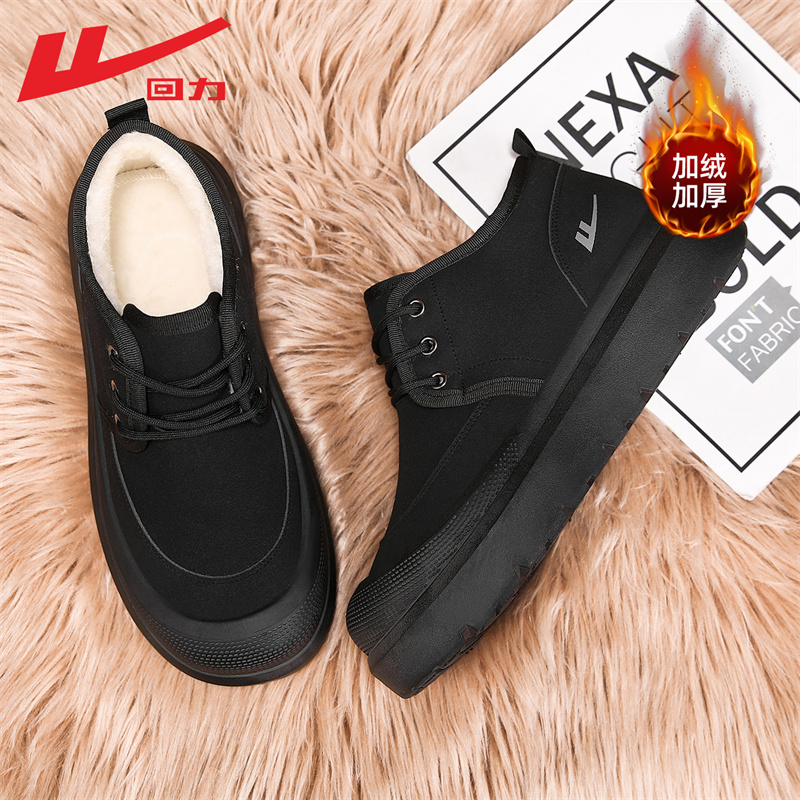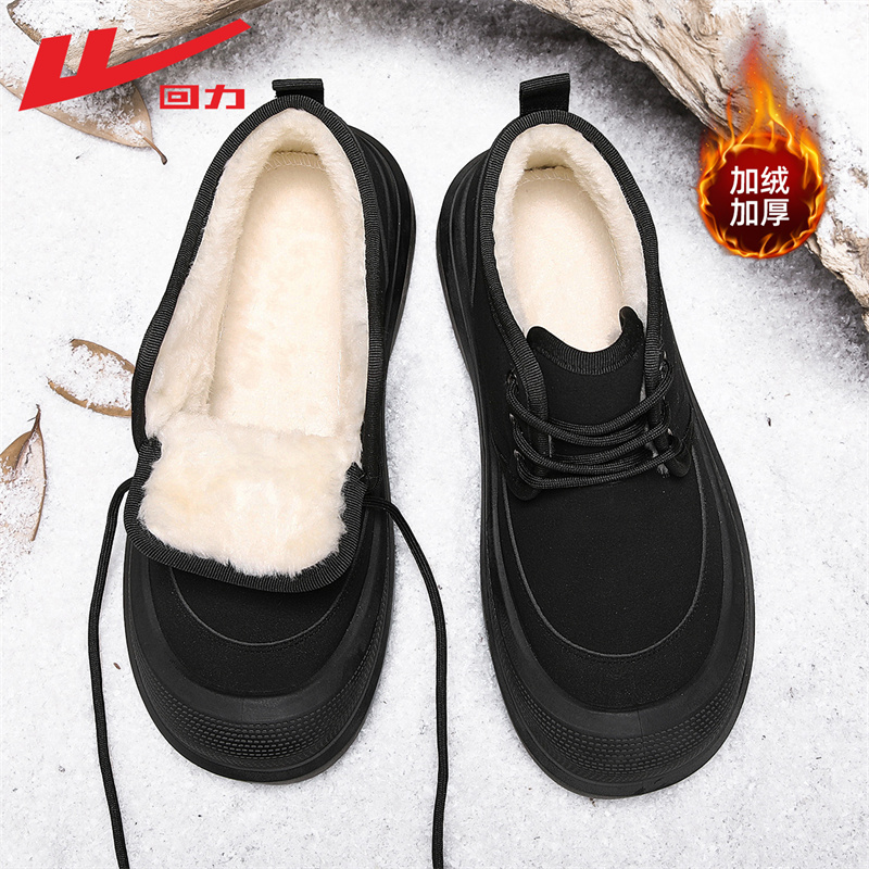 黑色保暖棉鞋 加绒加厚休闲百搭男士 男 2025秋冬新款 回力雪地靴男款