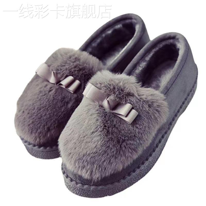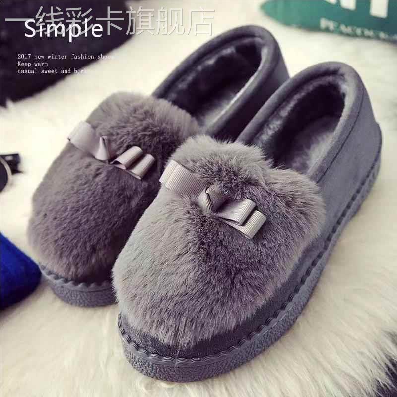 防滑一脚蹬 低帮平底懒人豆豆鞋 棉鞋 女士秋冬学生保暖加绒毛毛韩版