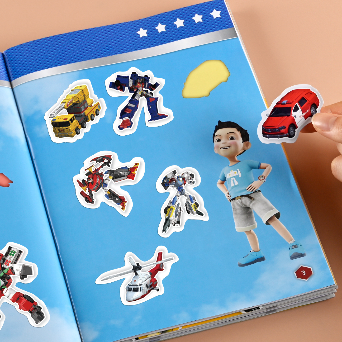 咖宝车神变形汽车贴纸书儿童专注力训练粘贴画男孩宝宝益智玩具书动漫画片时空守护飞天战队神奇 朋友拯救联盟超人气IP贴纸图画书