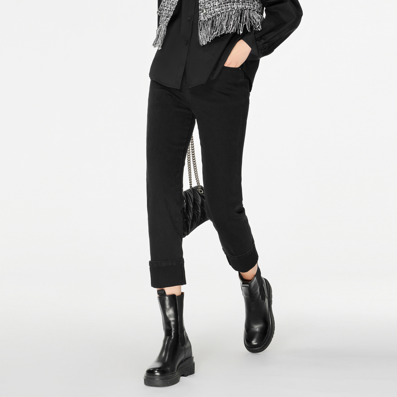 九分廓复古男友风宽松直筒牛仔长裤 新款 2025年秋季 热风女士牛仔裤
