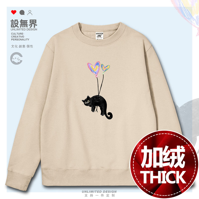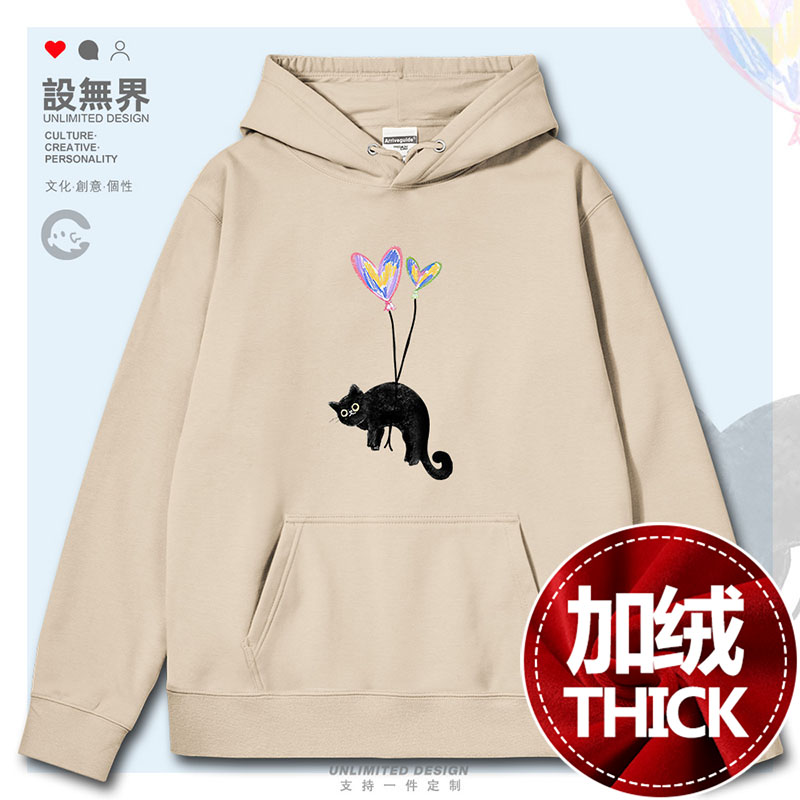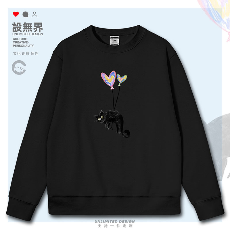 呆萌猫咪气球简约线条铲屎官趣味个性 无界 连帽卫衣男女潮0017设