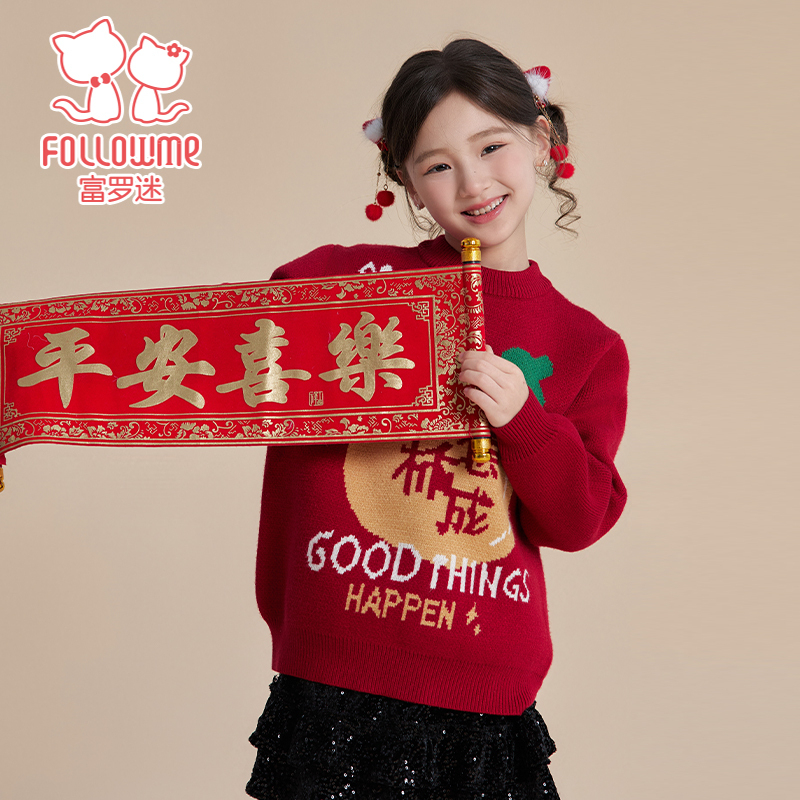 LAMLICKA蓝色小狗圆领套头毛衣男秋季 上衣 宽松慵懒风设计感针织衫