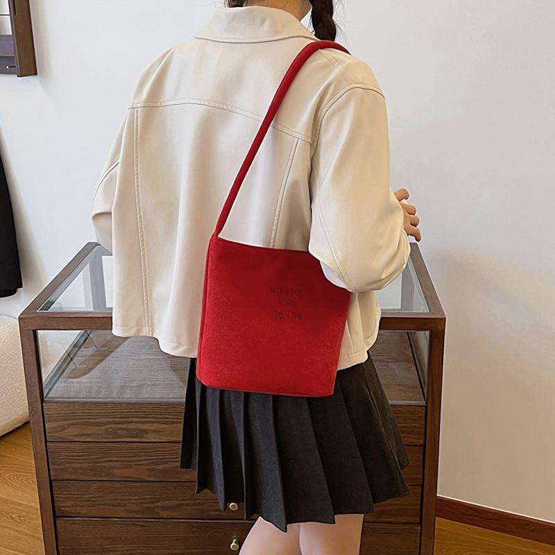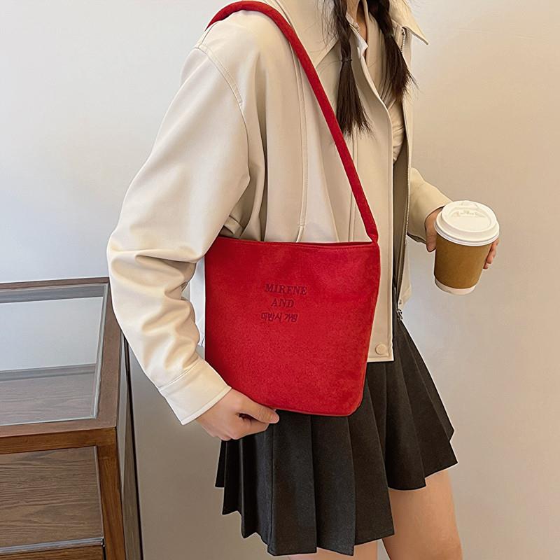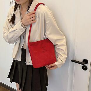 时尚 潮韩版 百搭单肩斜挎手提托特 新年红色水桶包包女2024新款 新品
