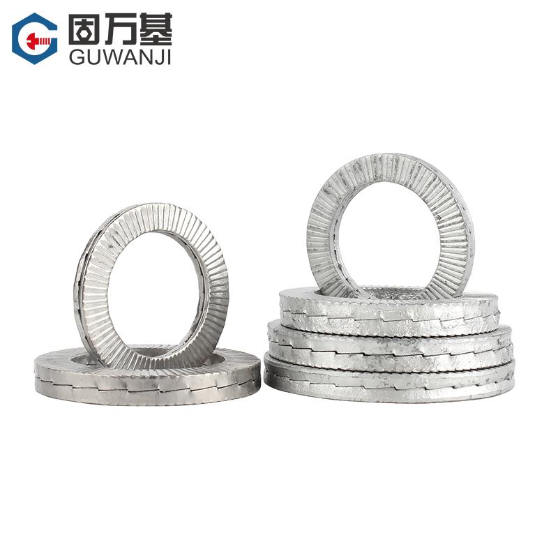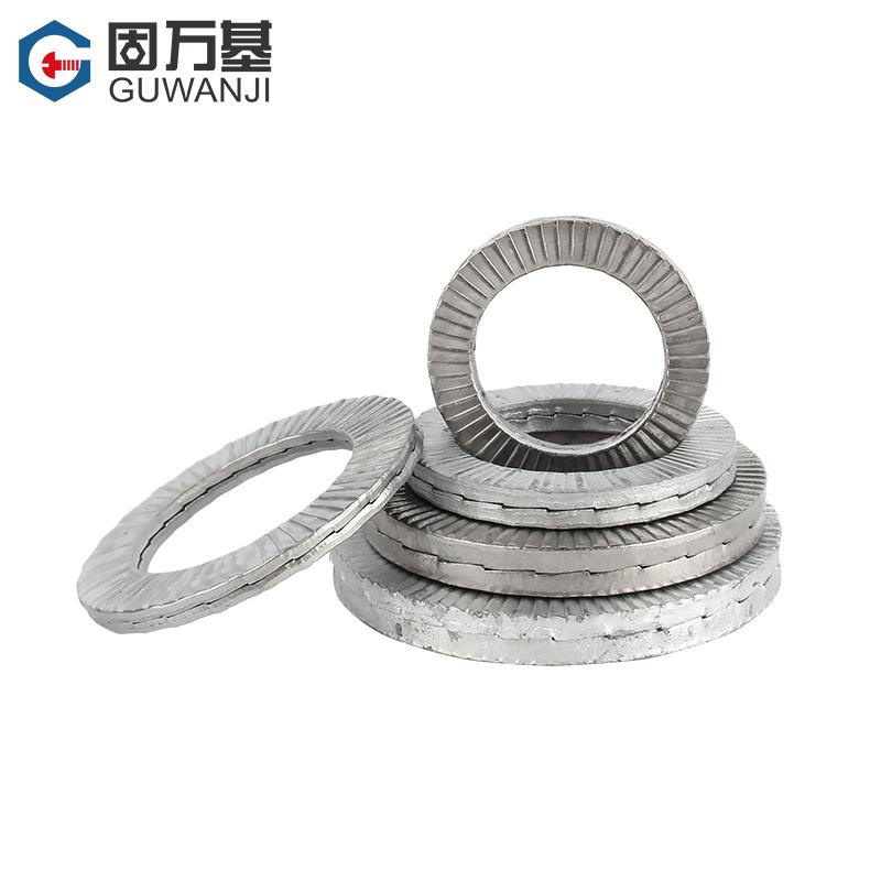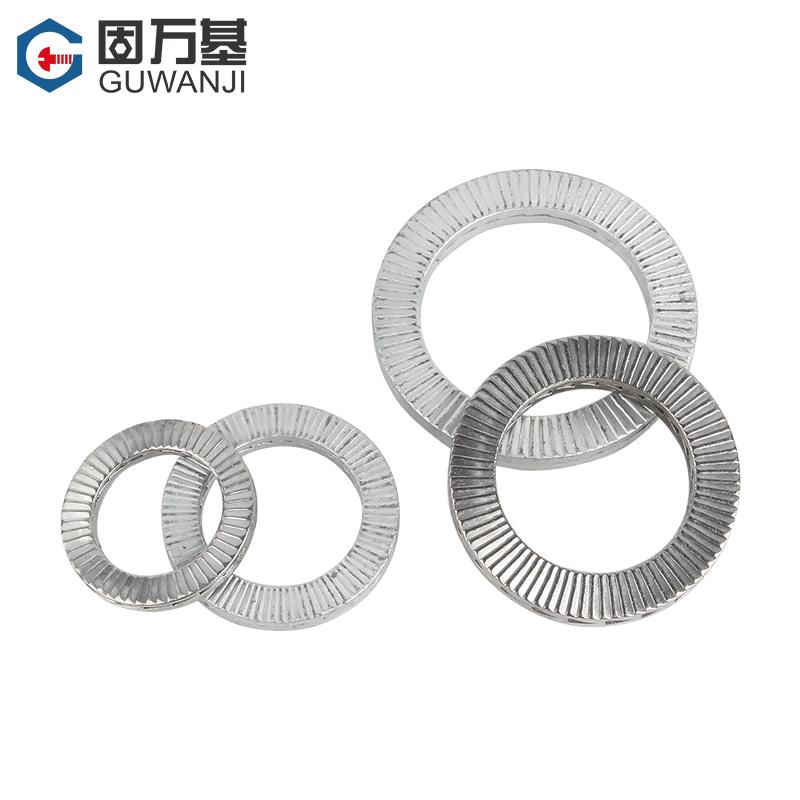 双叠自锁防松垫圈304不锈钢咬合式 带齿防松防滑锁紧螺丝垫片65锰