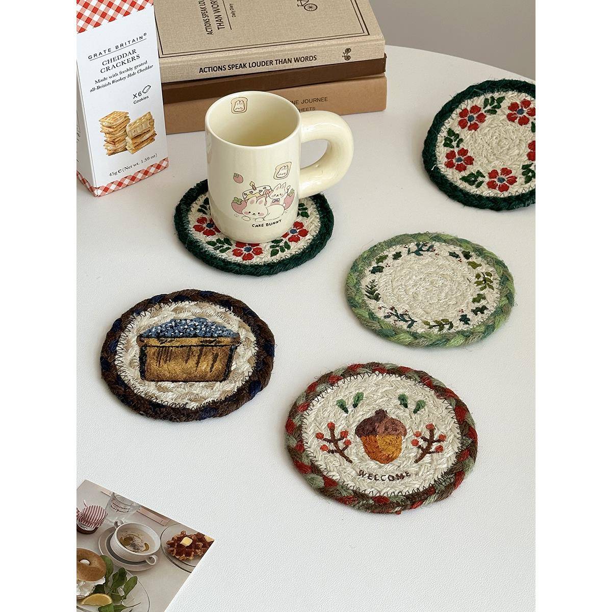 美式 覆古隔热垫家用圆形手工黄麻编织杯垫耐高温防油餐垫防滑耐磨