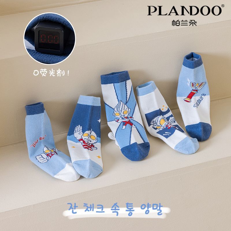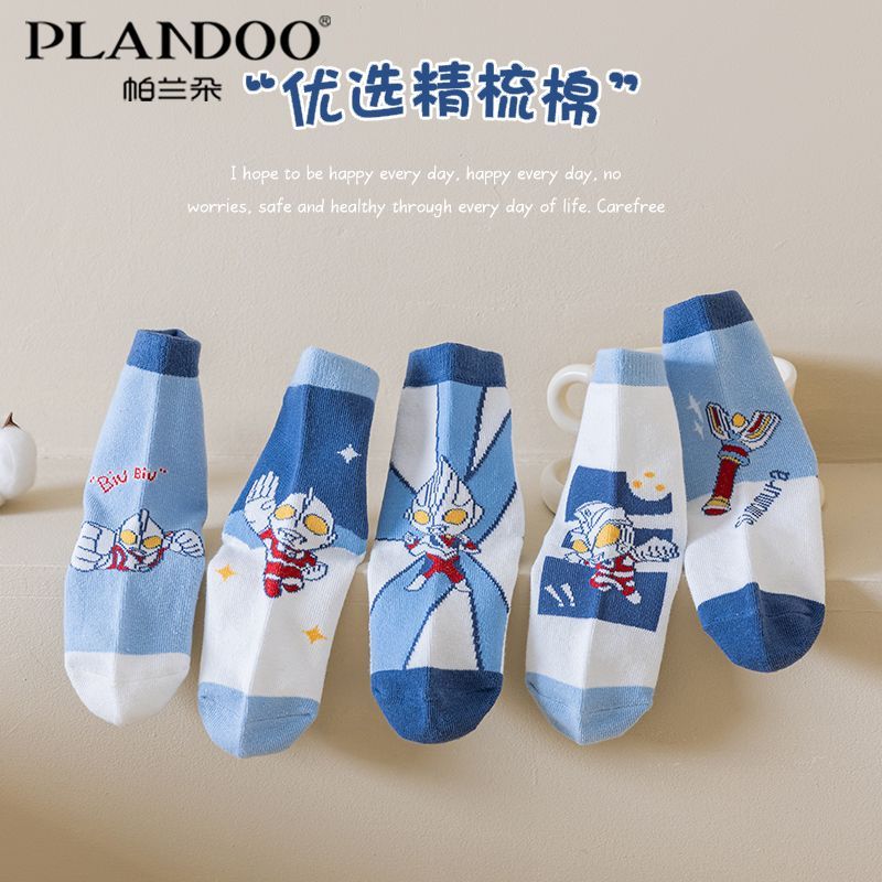 帕兰朵中筒童袜棉质舒适亲肤高弹不勒百搭可爱卡通蓝色系男宝袜子