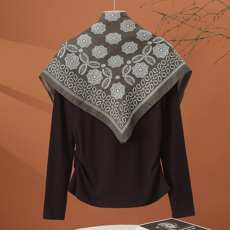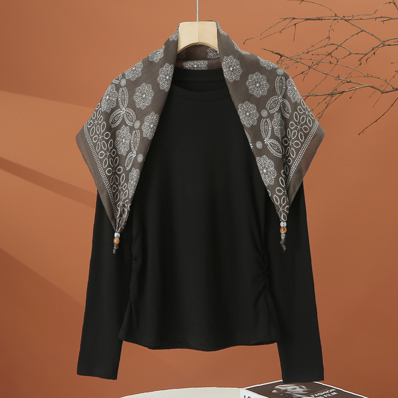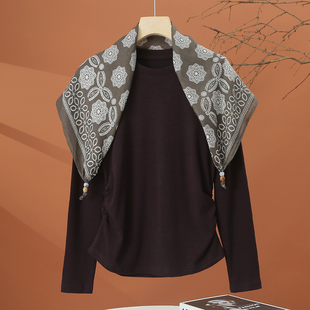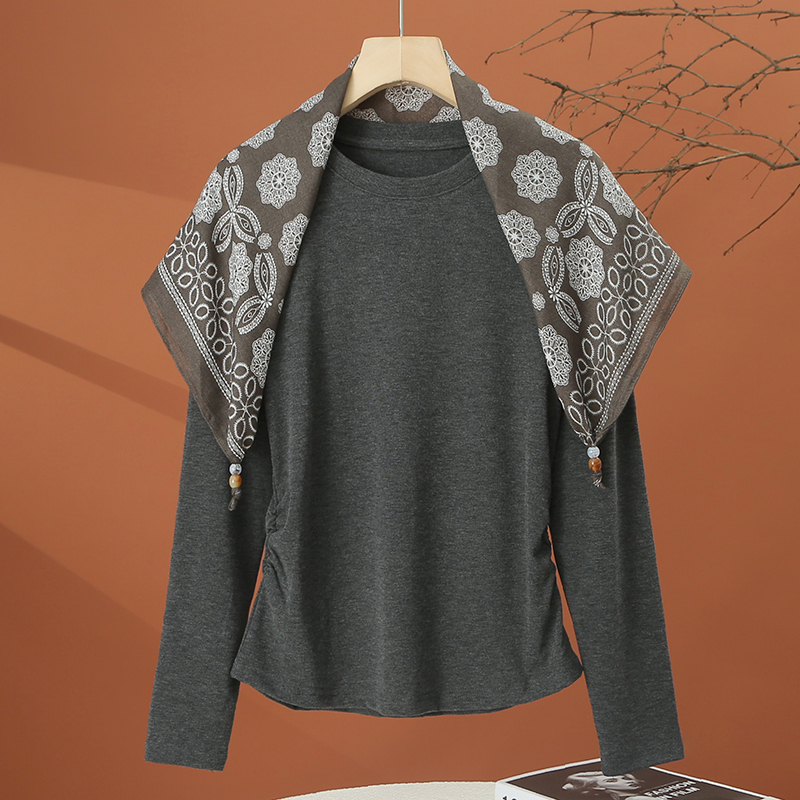 t恤女秋季 配丝巾短款 2025年新款 小衫 收腰上衣 洋气时尚 设计感长袖