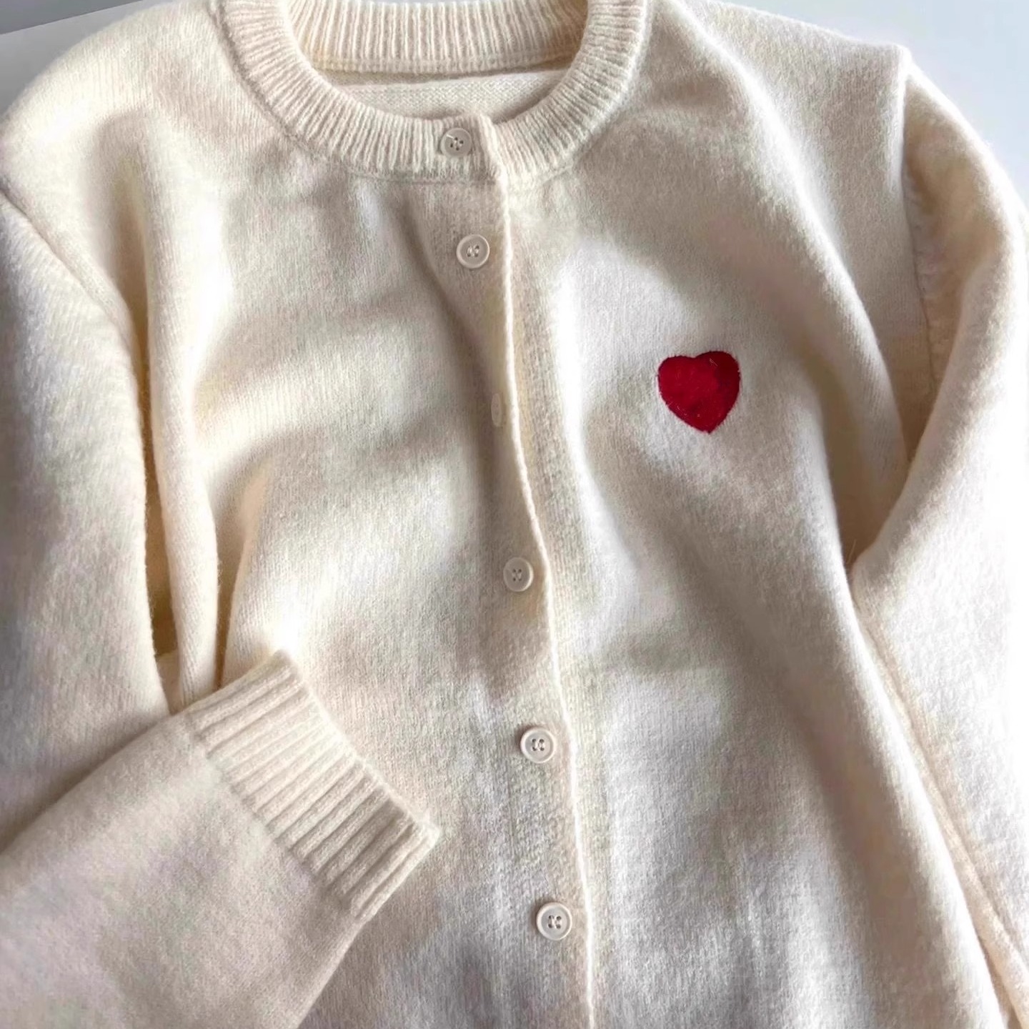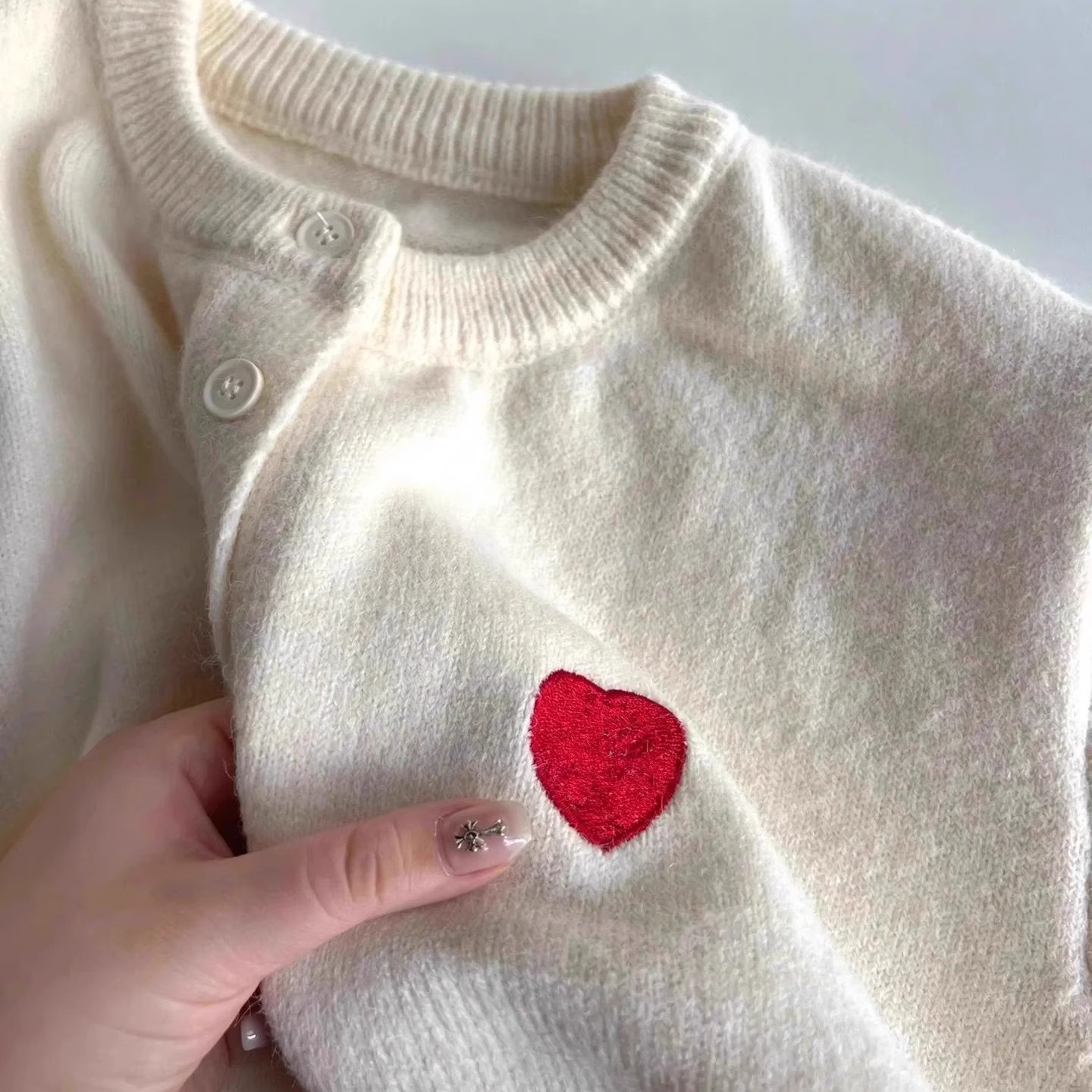 胖妹妹大码 秋冬洋气休闲百搭毛衣 200斤韩系复古爱心刺绣针织开衫