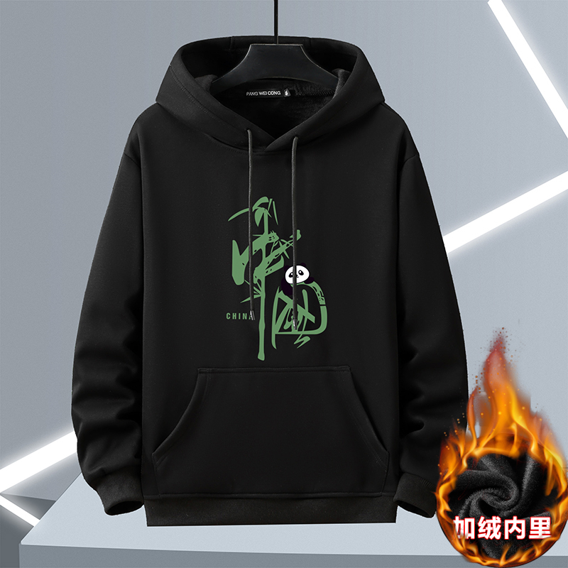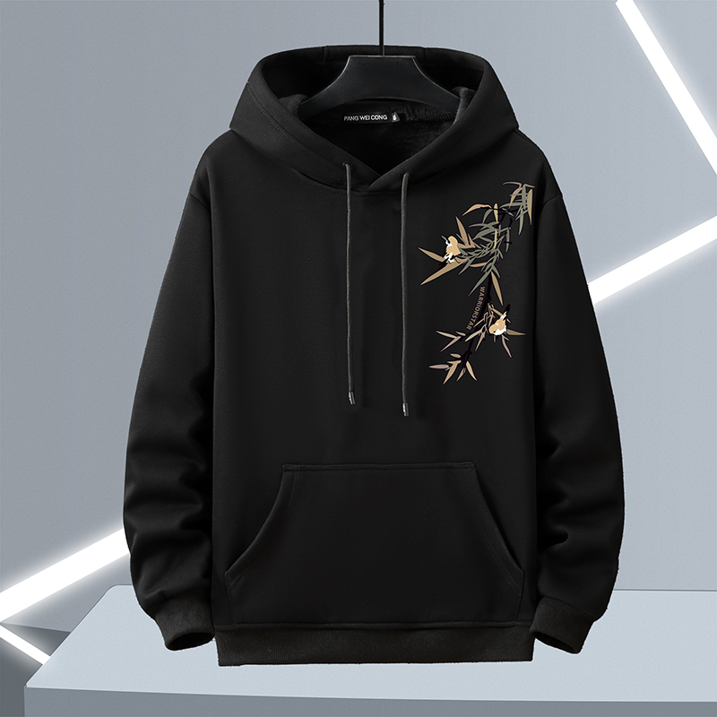 宸轩大码 卫衣加肥加大胖子宽松休闲肥佬竹叶加绒加厚保暖外套 男装