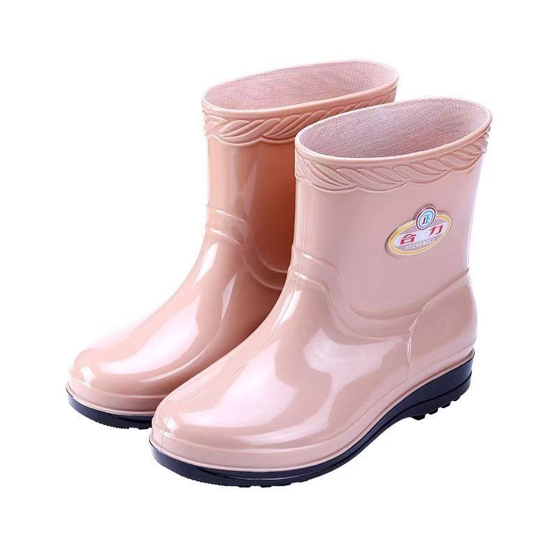 休闲雨靴女士防水鞋 夏季 中筒防滑厨房保洁厚底水靴劳保靴 女款 雨鞋