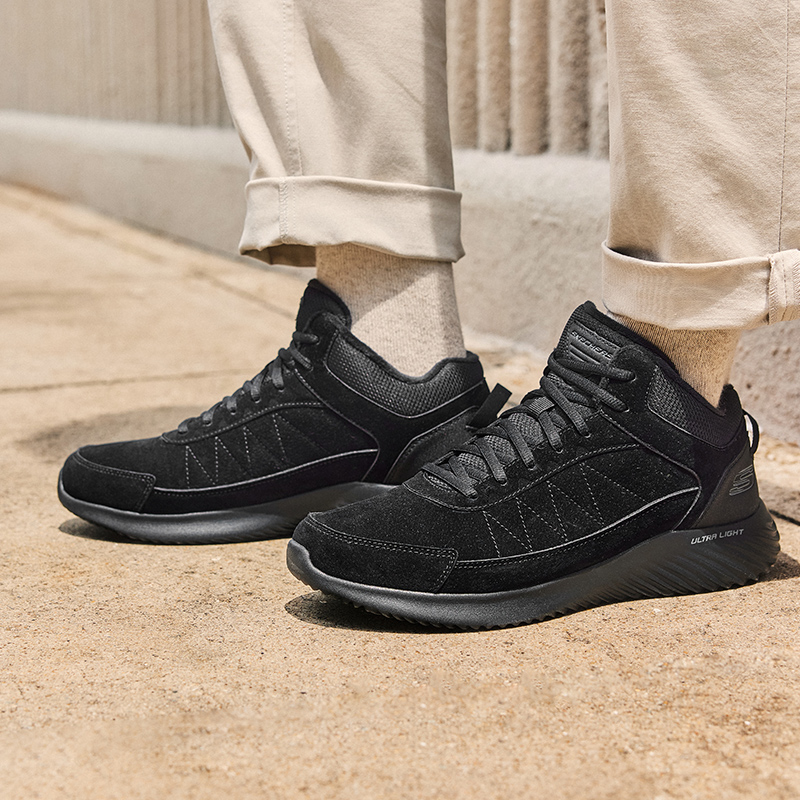 新款 运动鞋 加厚保暖休闲鞋 斯凯奇加绒男鞋 二棉鞋 冬季 黑色男士 棉鞋