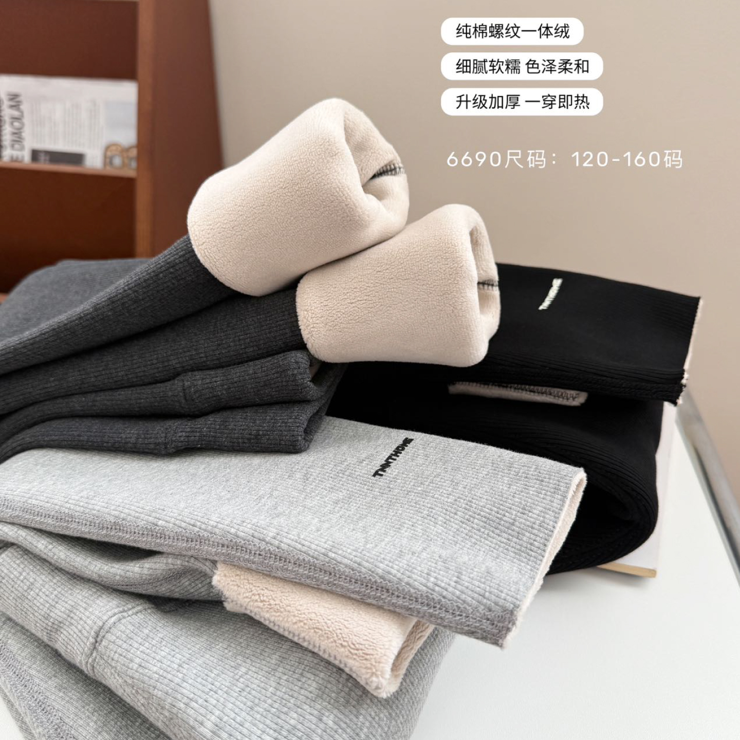潮 子儿童黑色外穿加绒长裤 女童打底裤 秋冬中大童加厚一体绒纯棉裤