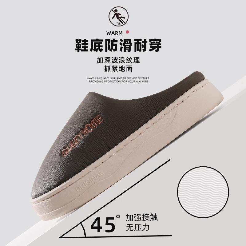 室内家居防滑厚底外穿踩屎感加绒棉拖男士 冬季 冬天 男款 防水棉拖鞋