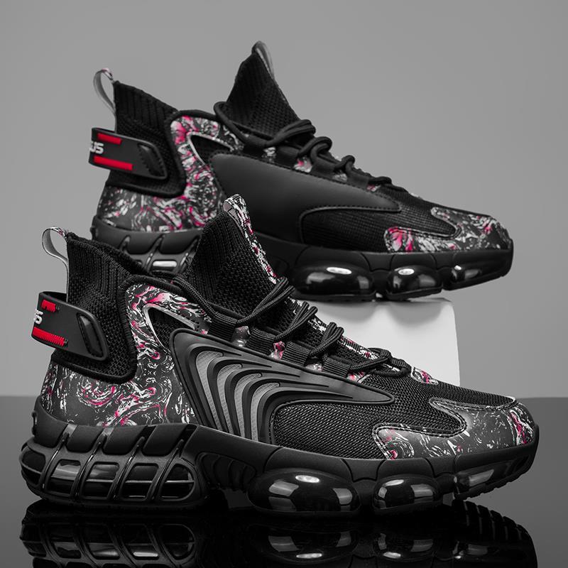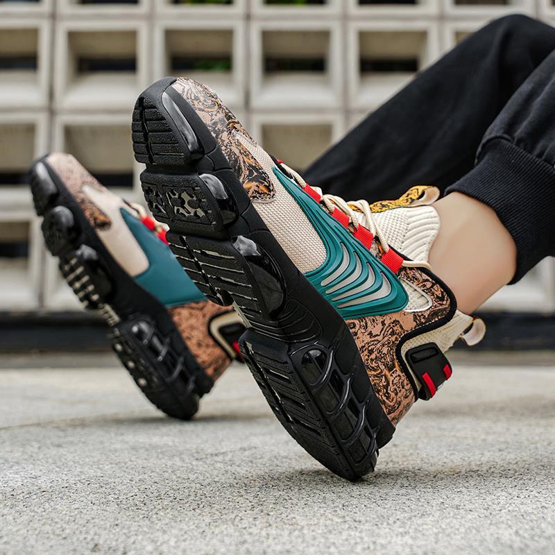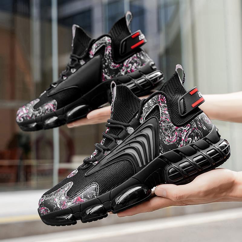 休闲跑步气垫减震黑色运动老爹潮鞋 透气飞织网面网鞋 秋季 2025新款