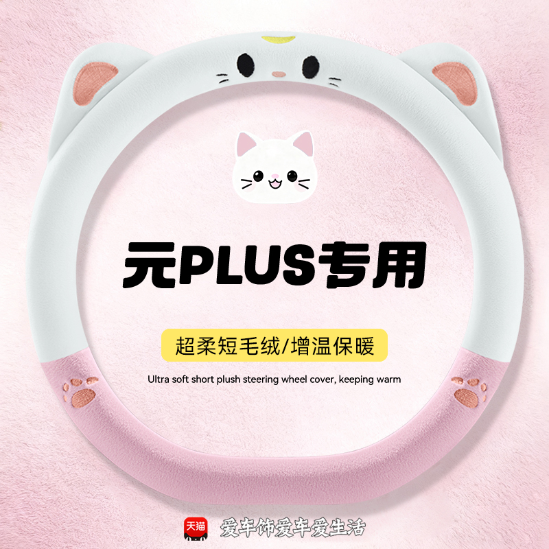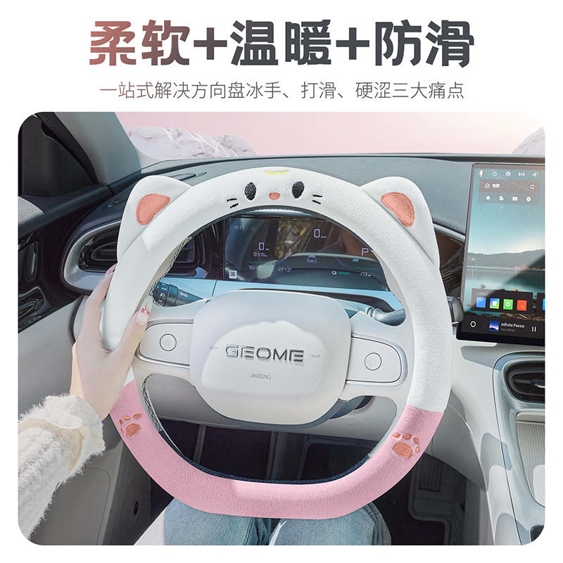 新款 通用女防滑高级吸汗透气四轮车通用型 猫耳朵汽车方向盘套四季