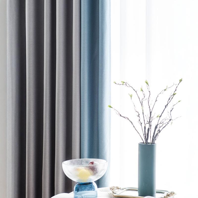 100全遮光窗帘北欧简约现代拼接客厅卧室亚麻棉麻成品遮阳窗帘布