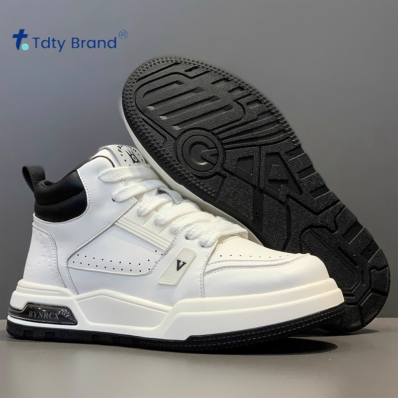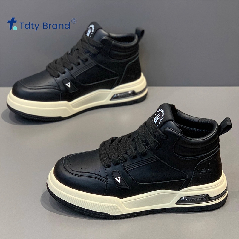 皮面休闲鞋 高帮保暖运动板鞋 厚底增高 黑白学生男款 乔丹2025年秋季