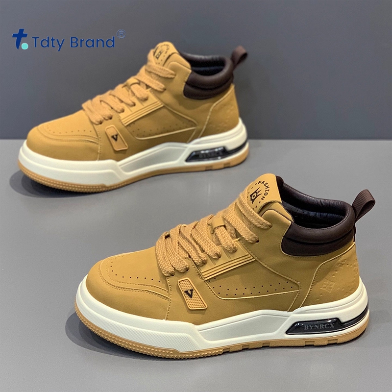 靴子 真皮防水厚底增高工装 森马马丁靴男秋季 高帮百搭休闲白色板鞋