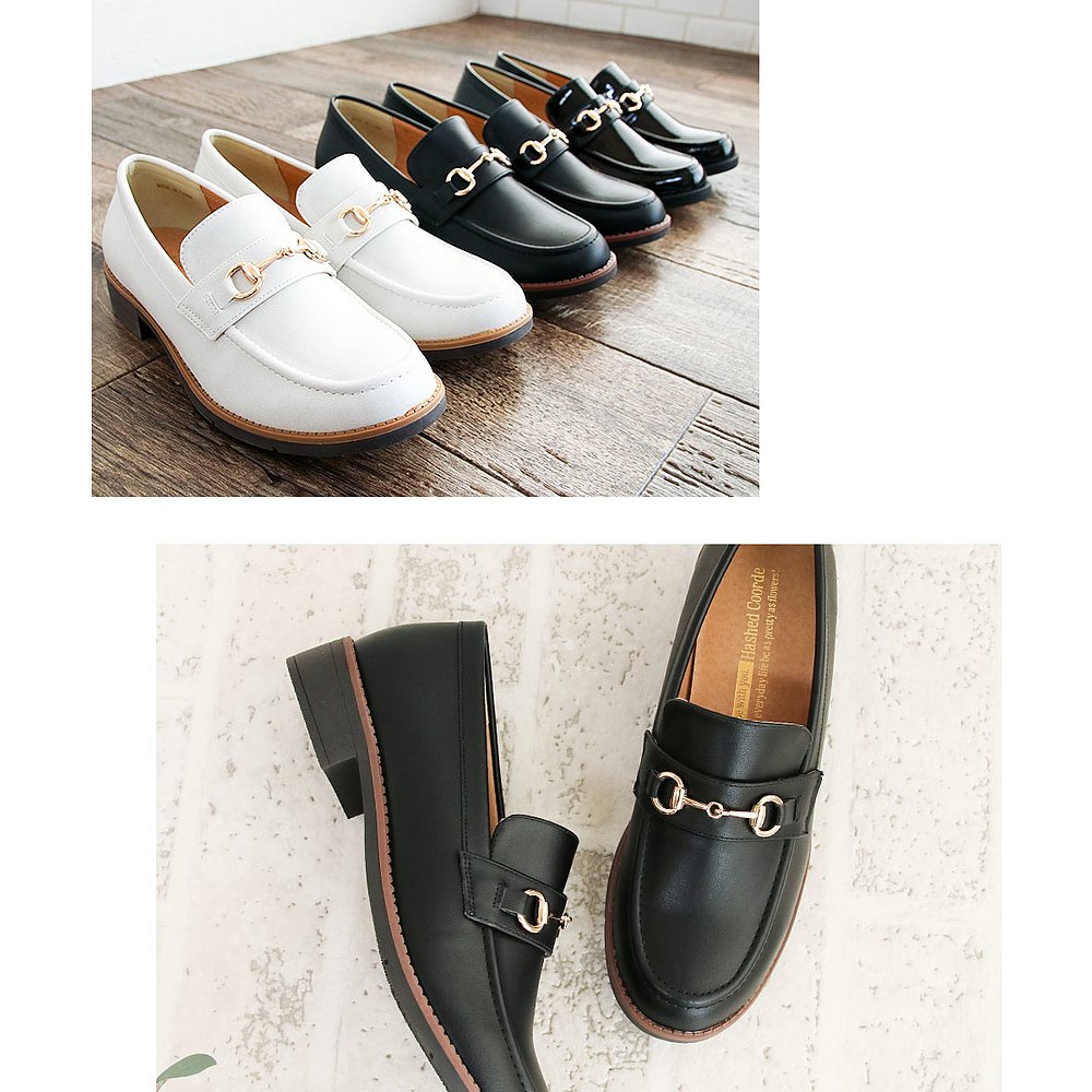 优雅可爱行走 饰抗菌防臭低跟平底鞋 日本直邮女士漆皮乐福鞋 金属装