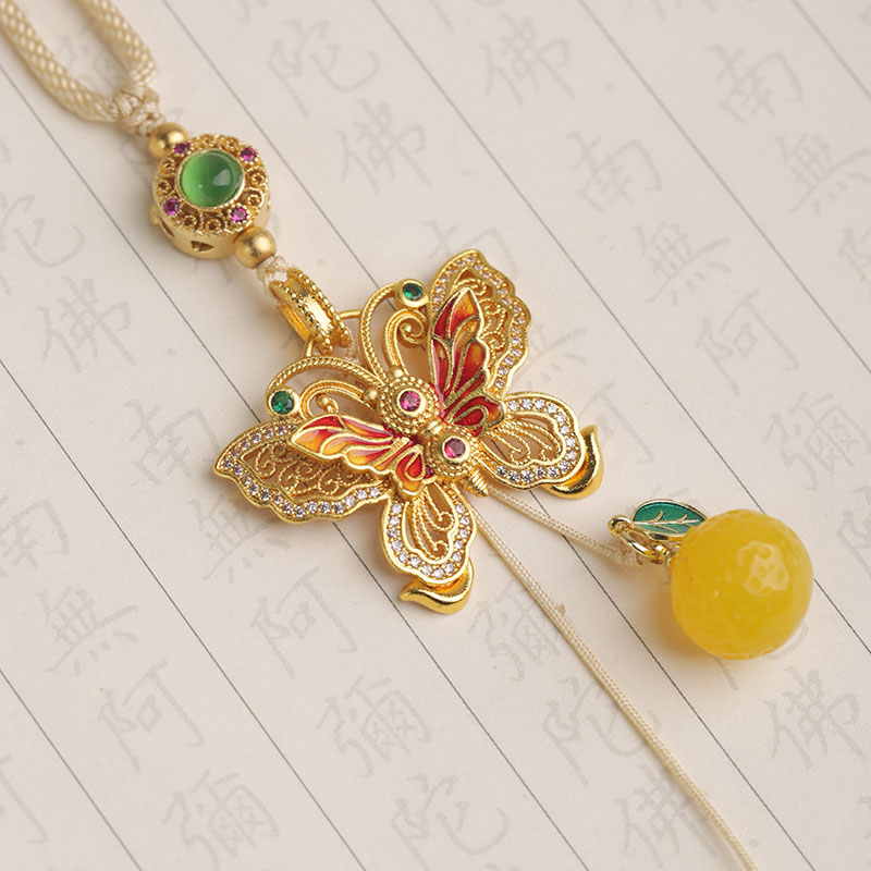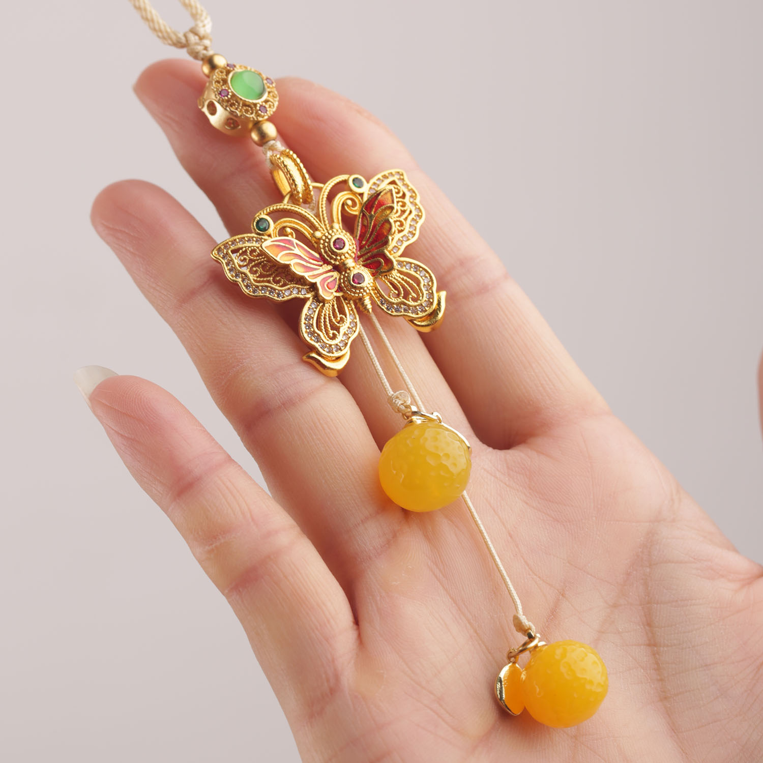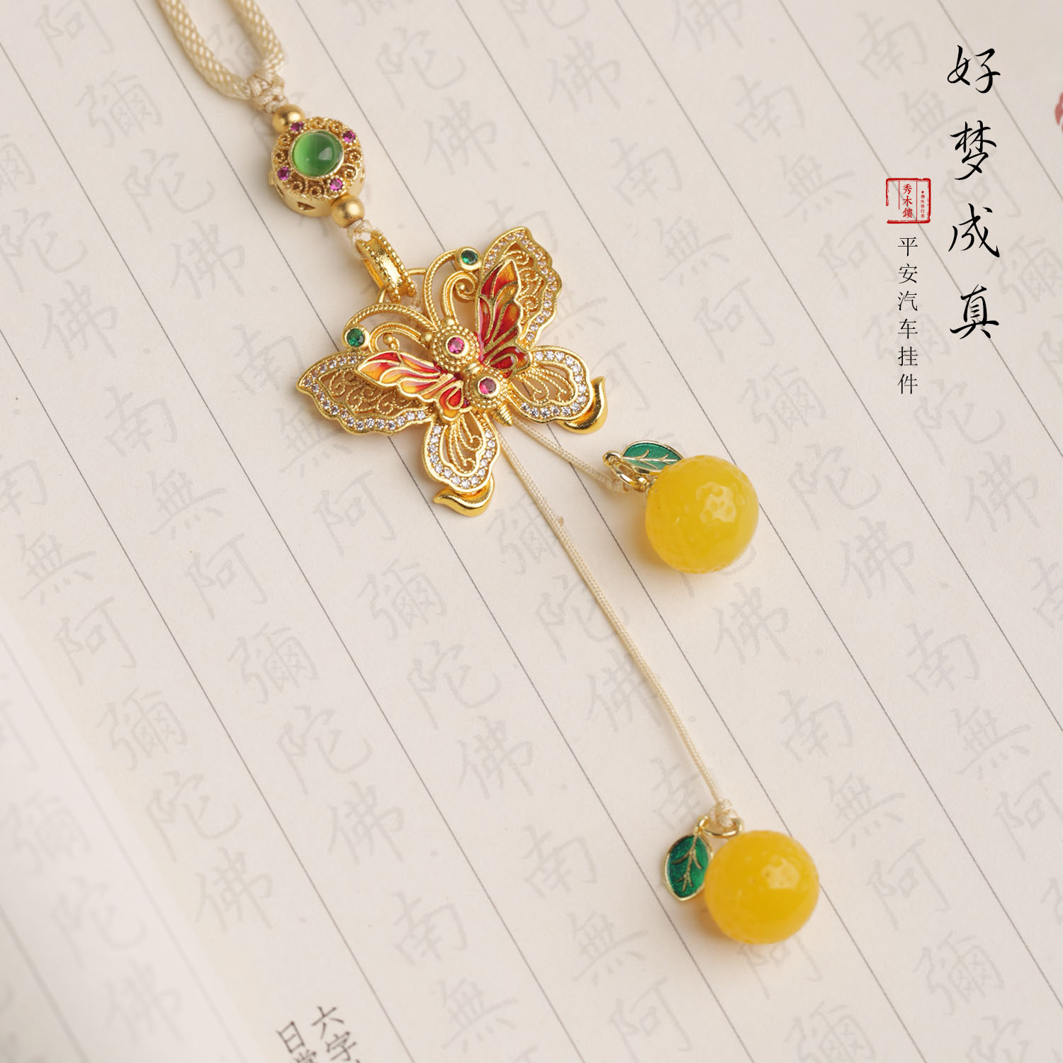 高档铜蝴蝶汽车挂件车后视镜挂饰好梦成真男女款 车内上载 式