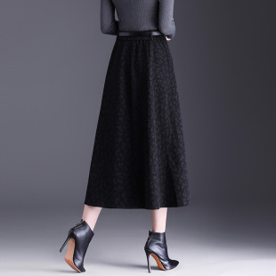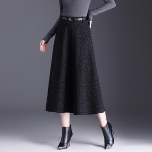 女装 新款 百搭直筒显瘦中长裙 纹半身裙2025年秋装 秋水伊人学院风格