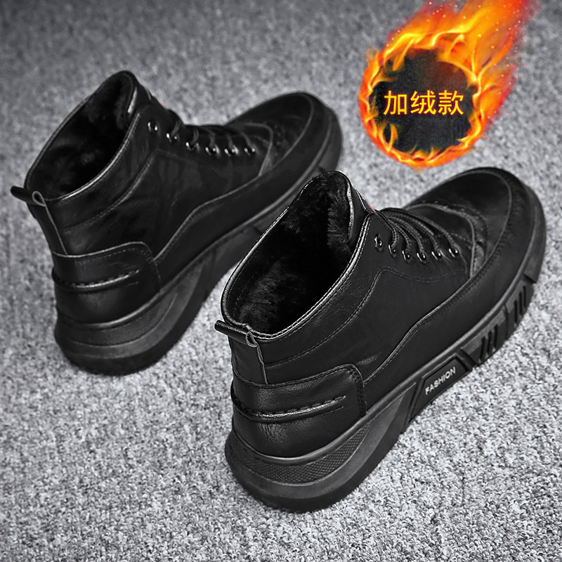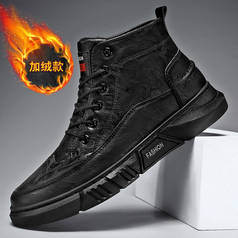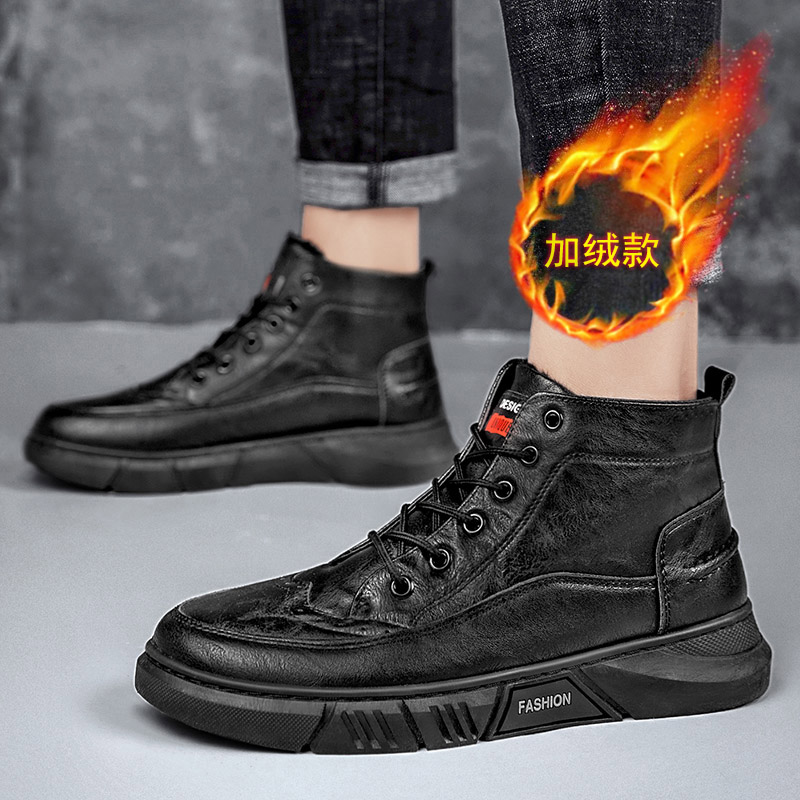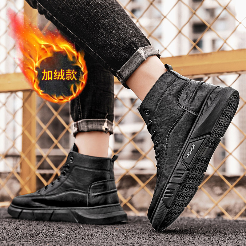 防滑加绒保暖黑色高帮马丁棉鞋 马丁靴男冬季 潮流英伦百搭休闲男士