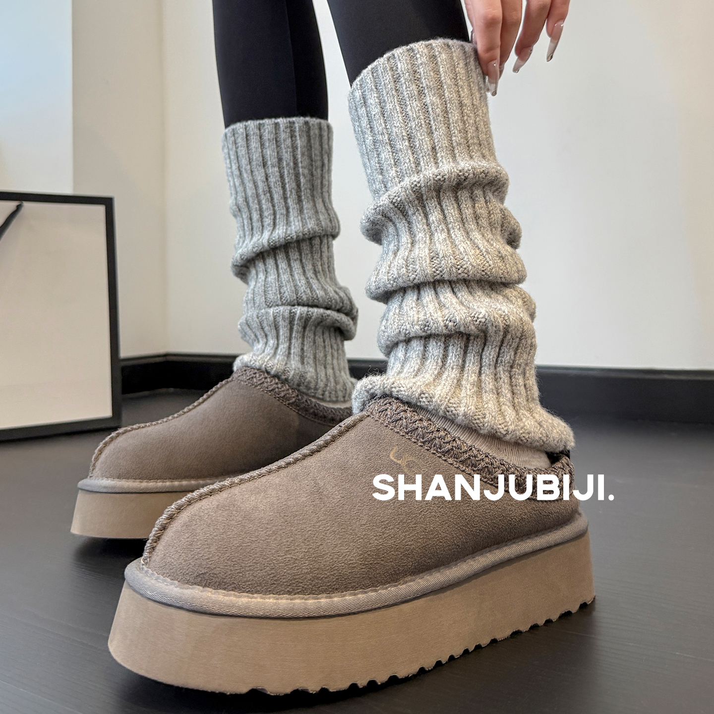 y2k加厚腿套秋冬配靴子叠穿 袜子女款 灰色袜套堆堆袜2025新款 爆款