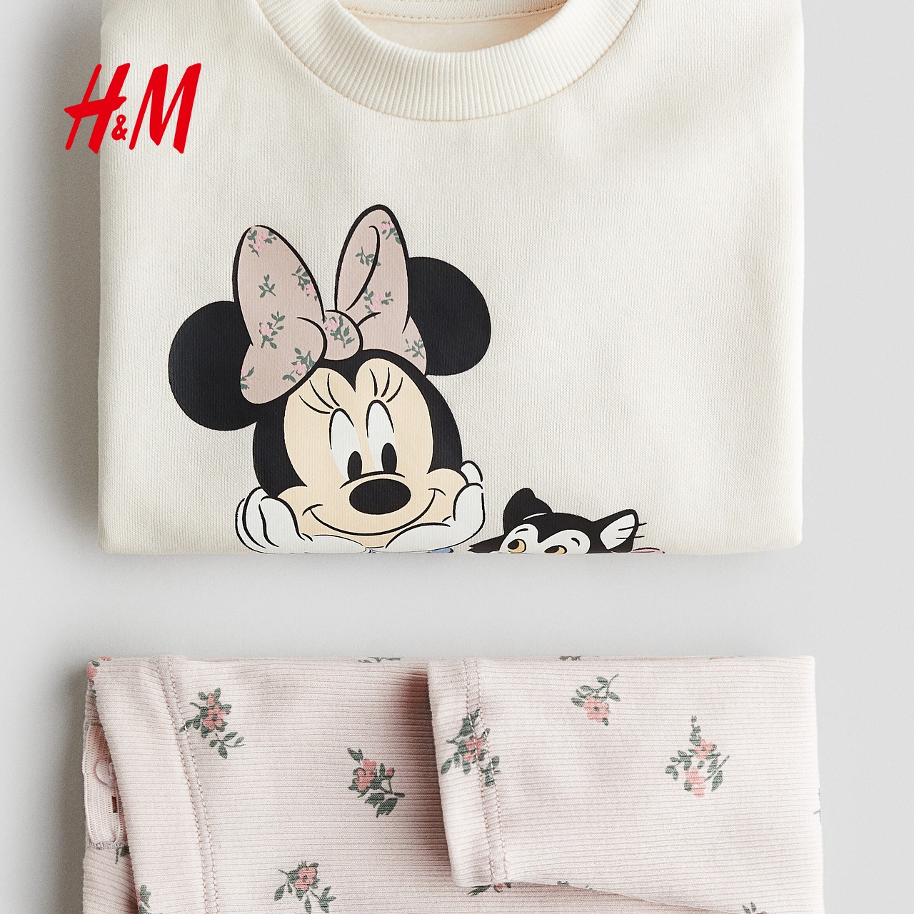 迪士尼系列 米妮印花圆领卫衣裤 HM童装 2件式 1296374 女婴套装