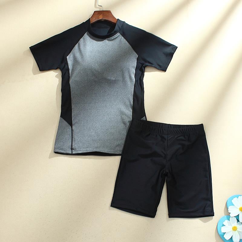 保守胖mm遮肚游泳装 短袖 显瘦1005c 泳衣女运动分体平角裤 微胖大码