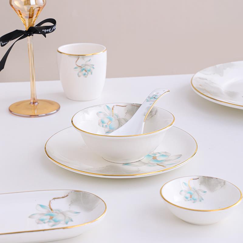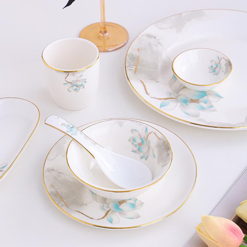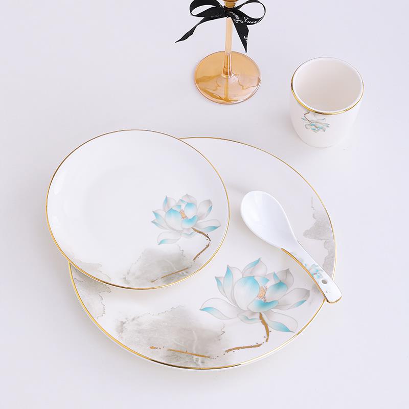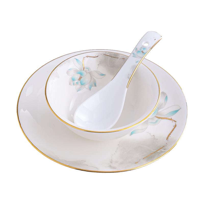 酒店陶瓷摆台餐具四件套包厢接待会所新中式 盘碗勺餐厅火锅店骨碟