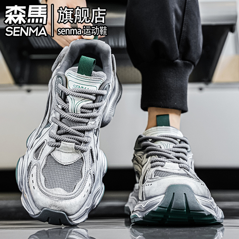 爆款 秋季 休闲运动跑步鞋 男士 森马男鞋 厚底增高复古老爹鞋 2025新款